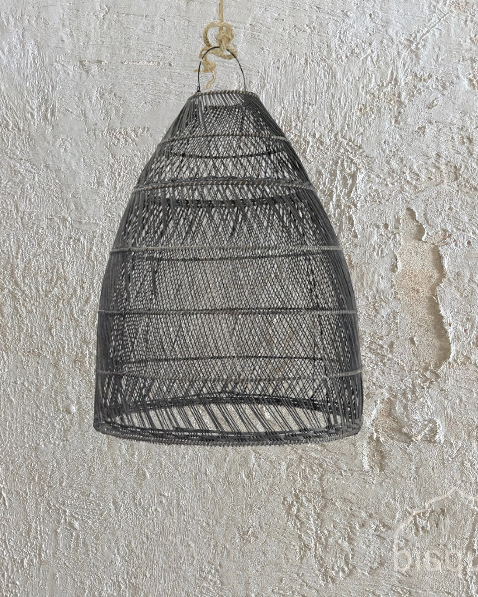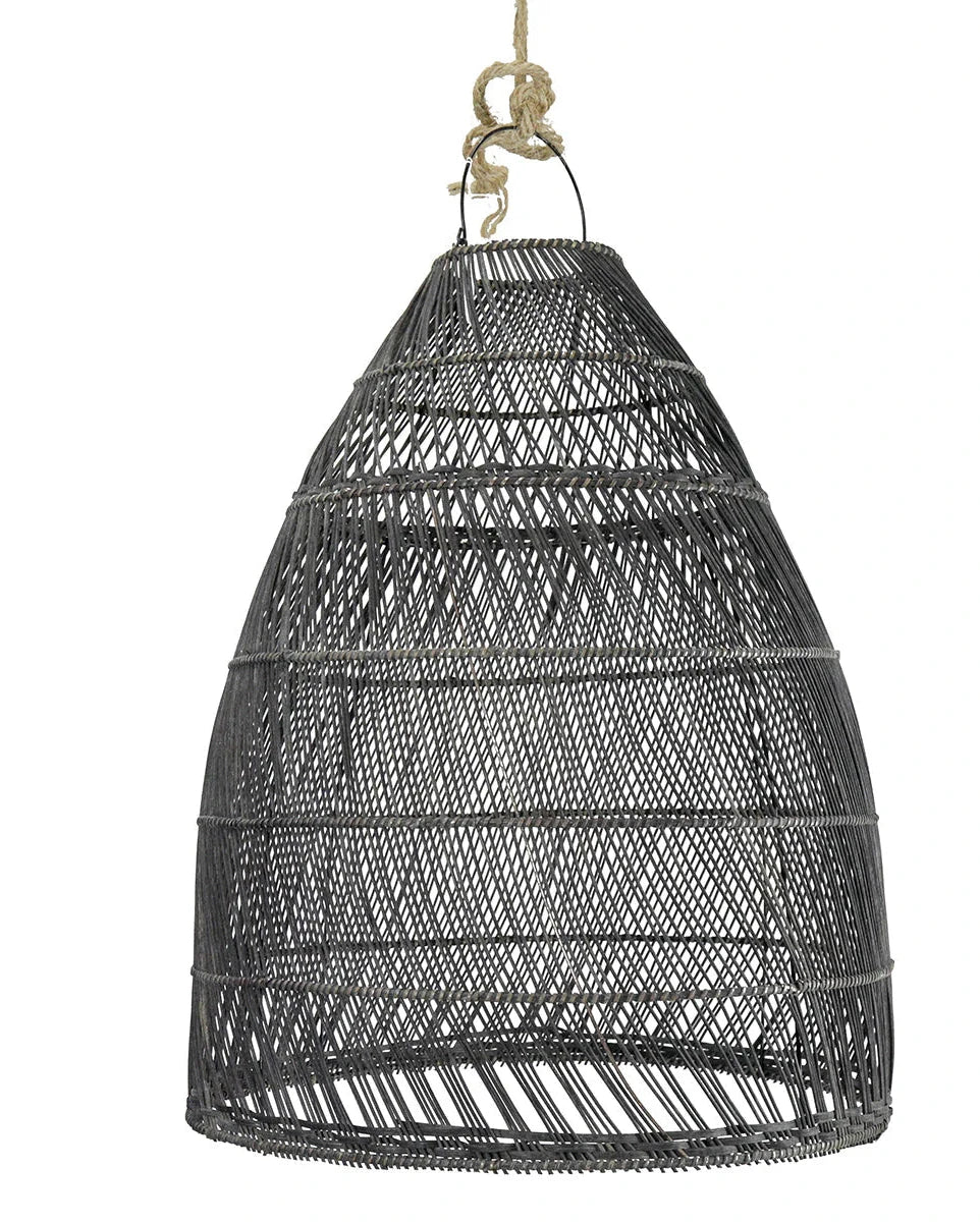 Cone Rattan Pendant Light with a rustic background Black Rattan