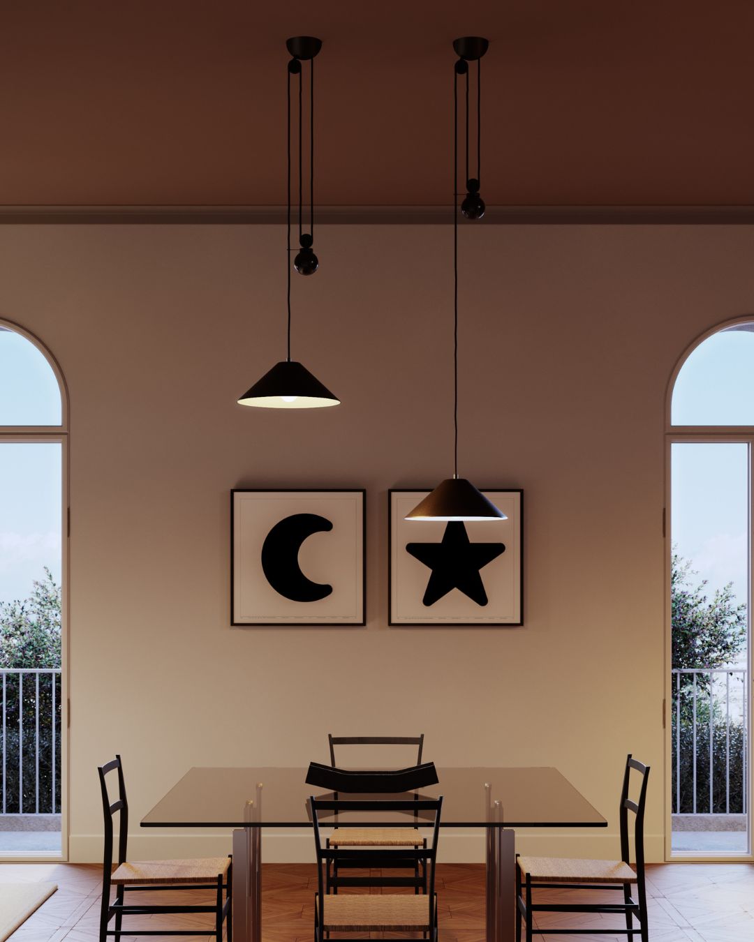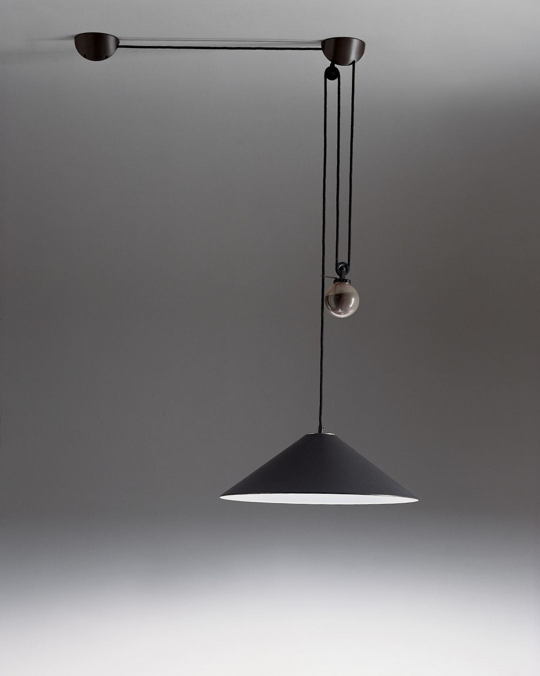 The Conical Shade Pendant Light is a classic yet simple Italian design created in 1974. Choose between an Anthracite Grey metal shade for a more Industrial style, or a White Opal technopolymer shade for an elegant lighting solution. This timeless pendant also comes with the choice of a simple suspension or a counterweight suspension to add interest to the silhouette and conveniently adjust the height when needed.