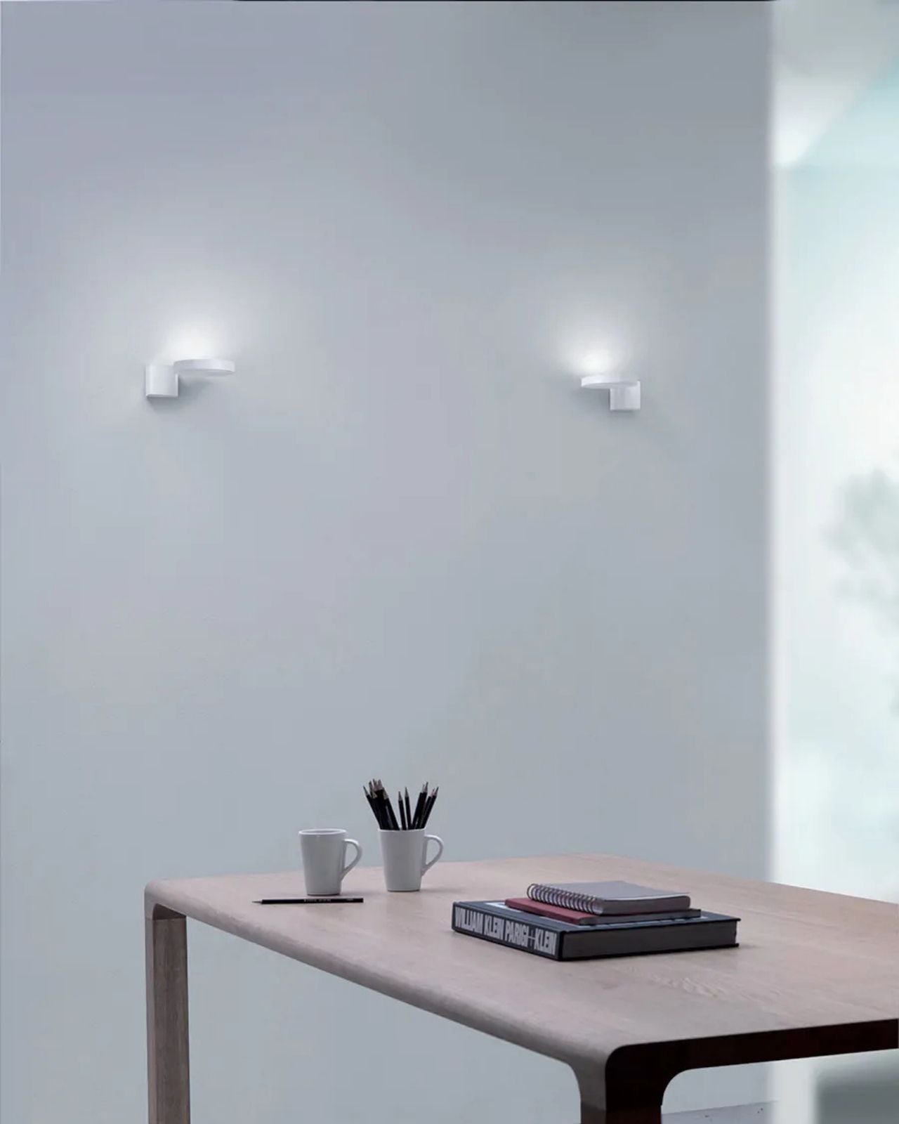 This gorgeous adjustable lamp with a round-shaped body made of aluminium. This light has a rotatable head allowing you to adjust the angle of the light. The diffuser of the lamps transmits direct and/or indirect light. It is available in the following colours: White or Titanium. This piece has an attachment for the wall from which a LED light source is fixed, which can be swivelled and provides a 3000k with 1350lm light.