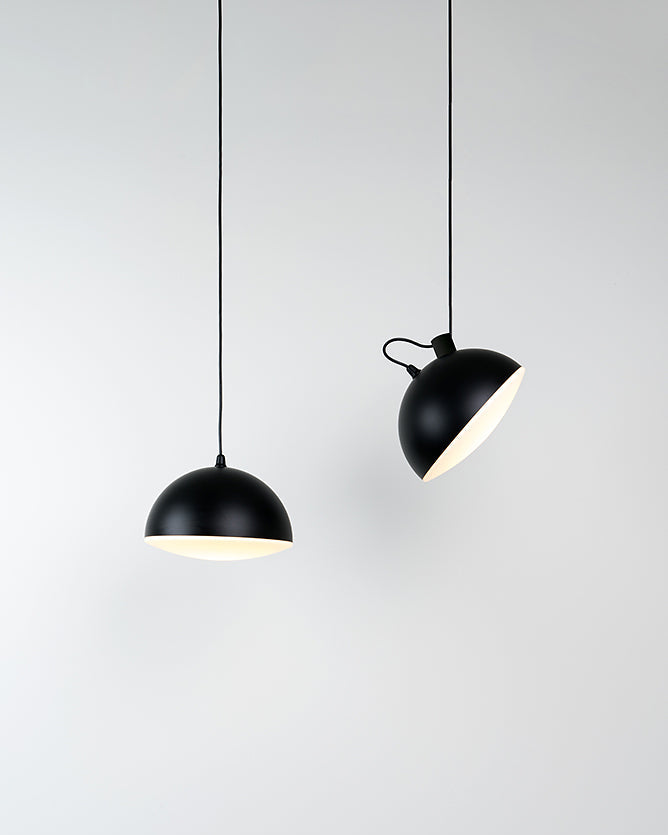 An incredibly versatile addition to any space. This demi globe pendant sits suspended by a black cord, inviting the simplicity of this pendant light to create a striking interplay between function and form. Style as a single pendant or cluster of three.