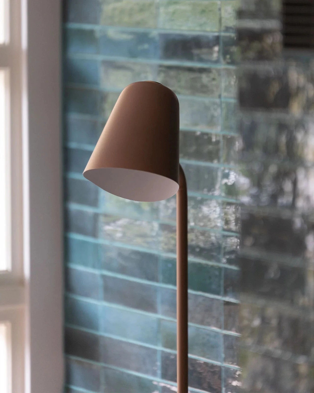 The powder-coated metal base and shade give way to a seamless silicone sleeve which makes the lamp adjustable. This flexible stem can be rotated and bent to customise the direction of the shade to suit your needs.