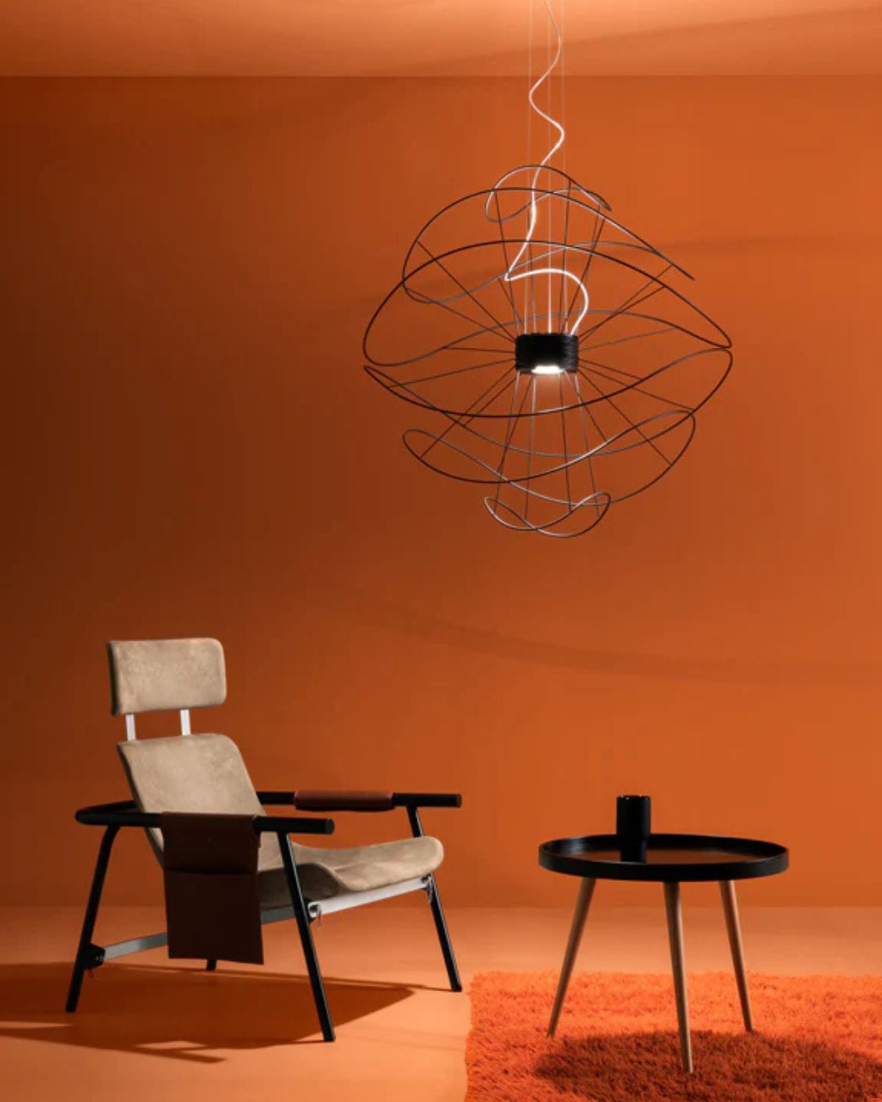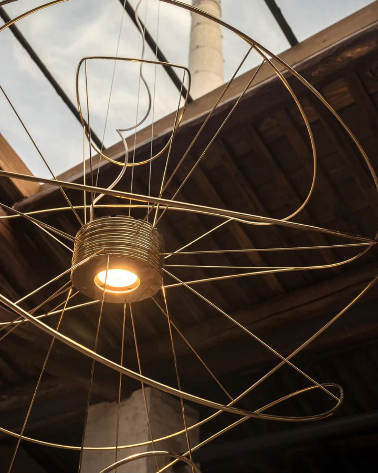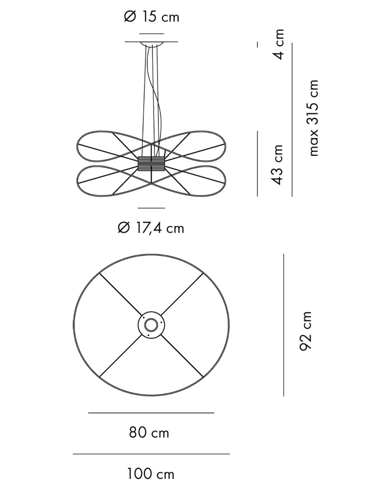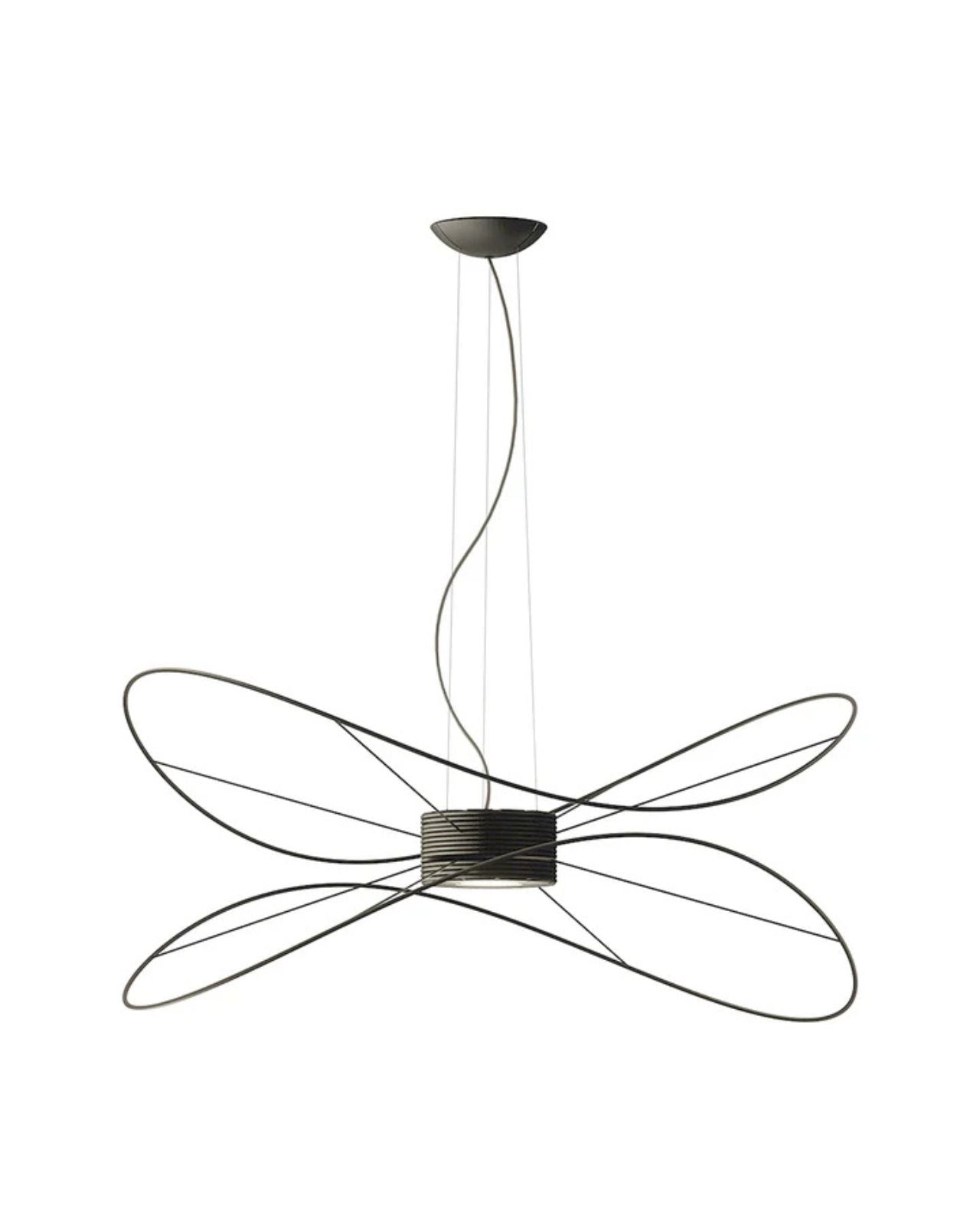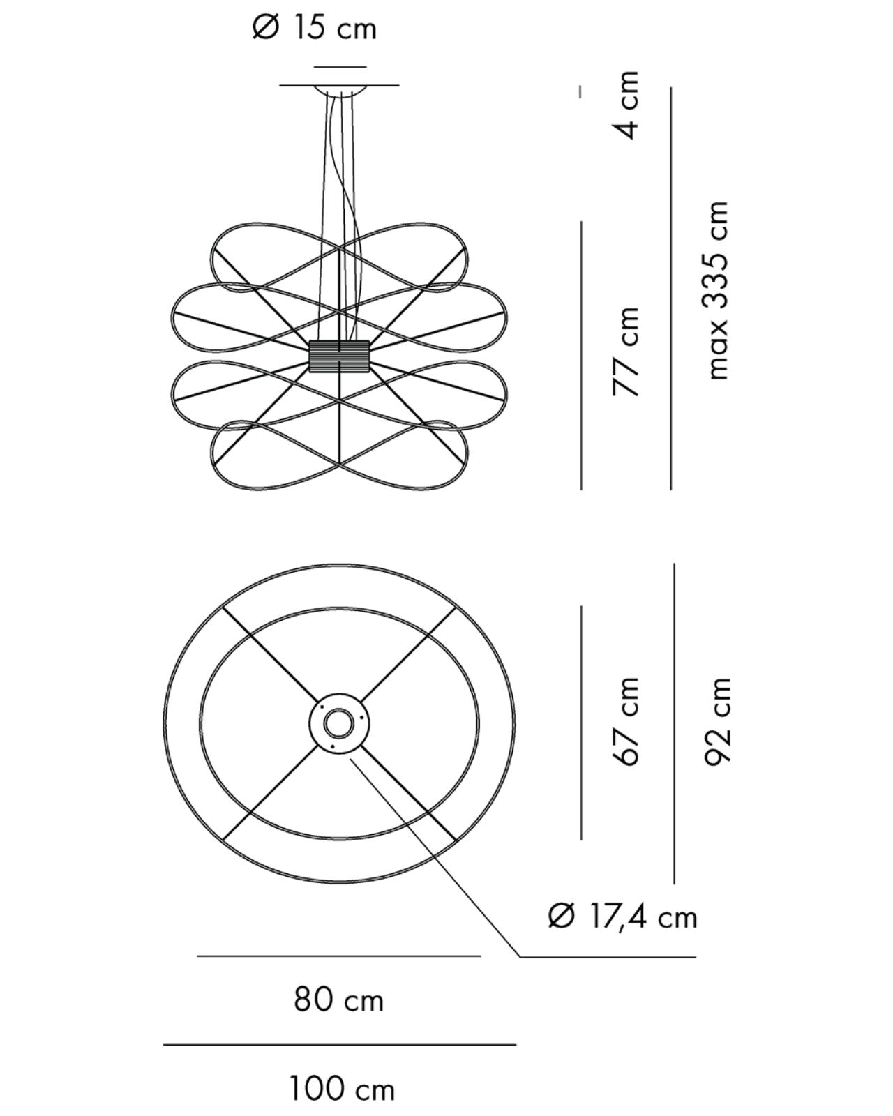 The Contemporary Hoops Pendant Lights are a collection of ceiling lamps and suspended lights with interchangeable elements in different shapes and sizes. Winding metal hoops hang below a central base creating a decorative fitting for feature lighting applications. The Hoops pendant produces light upward and downward from the central integrated LEDs with diffused beam. Dimmable. Available in gold, black or white finish in a range of sizes.