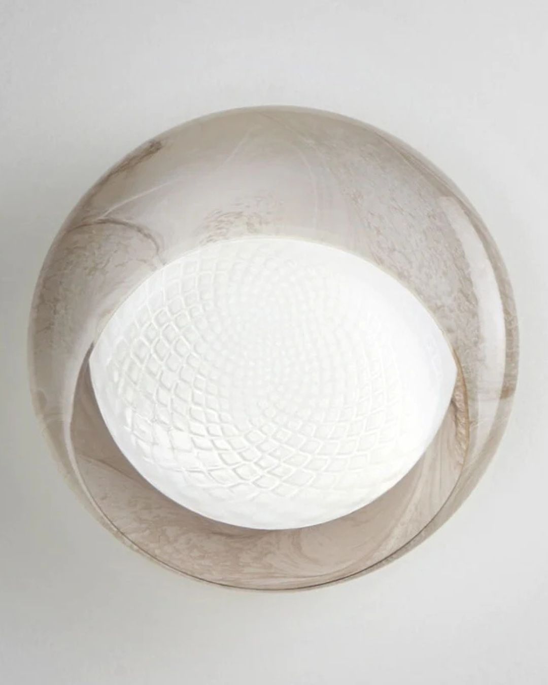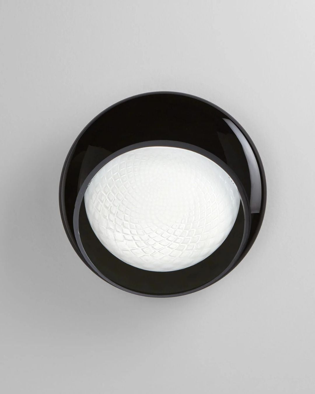 Comprising of an external glass made in a alabaster, white or black finish paired with a internal glass diffuser. The Curved Blown Glass Wall Light is a rounded wall light, but with the unique feature of a subtle curves of a upper glass lip that curves inwards creating an elongated wall lamp. Made in Italy, an 15.5W LED (Built-In), to provide a 3000K warm illumination an artistic statement in your interior space.