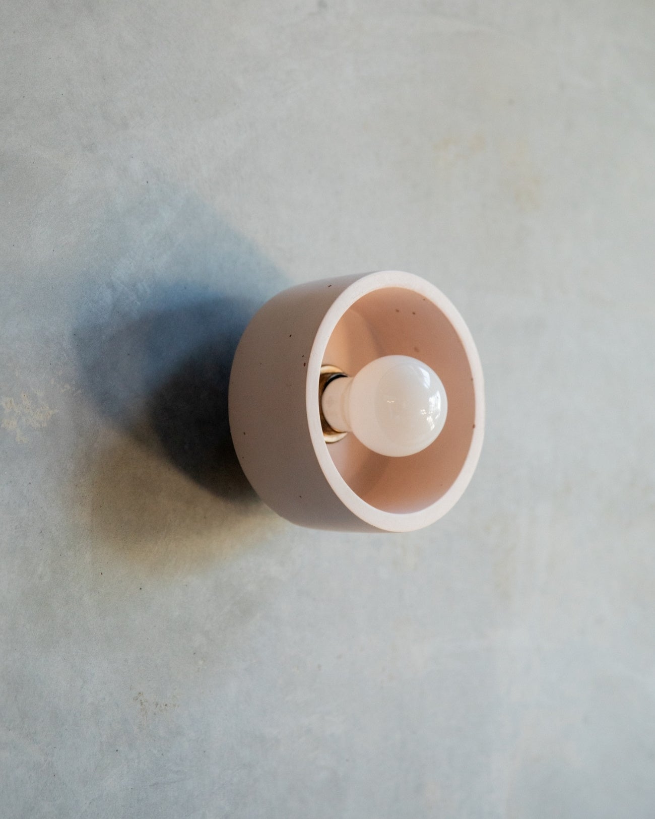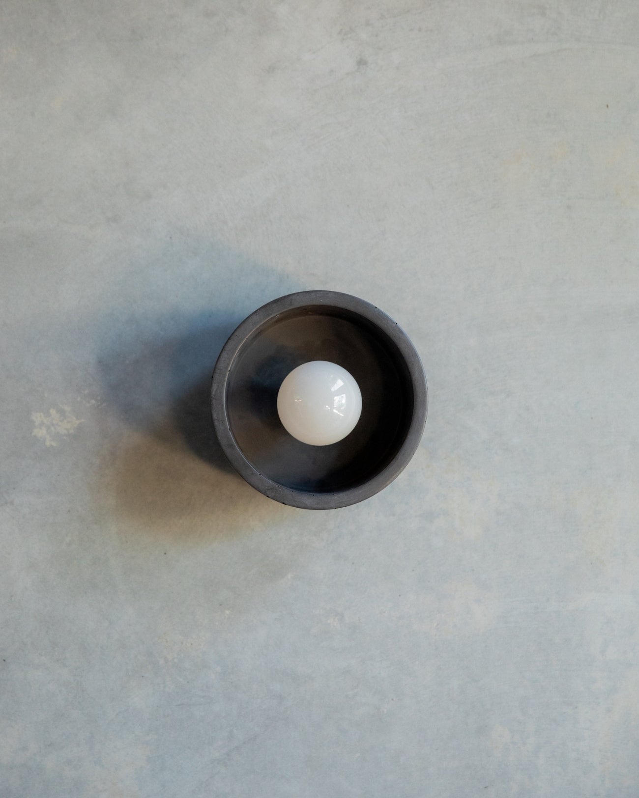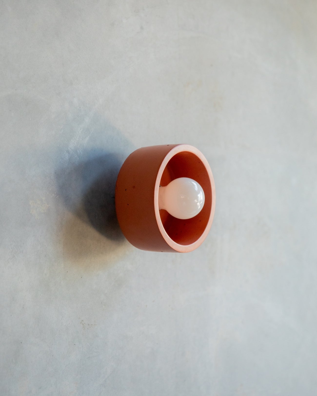The Cylindrical Concrete Wall Light features a wide cylindrical design that blends minimalist elegance with raw materials. This fitting is made from concrete and glass fibres that are hand-poured locally in Ballina, and is available in a curated palette of earthy tones including charcoal, cocoa, bone white, sand, nude, terracotta, and moss. Perfect for adding soft, ambient illumination to hallways, living spaces, or bedrooms, its understated shape and natural finishes create a warm and inviting atmosphere.