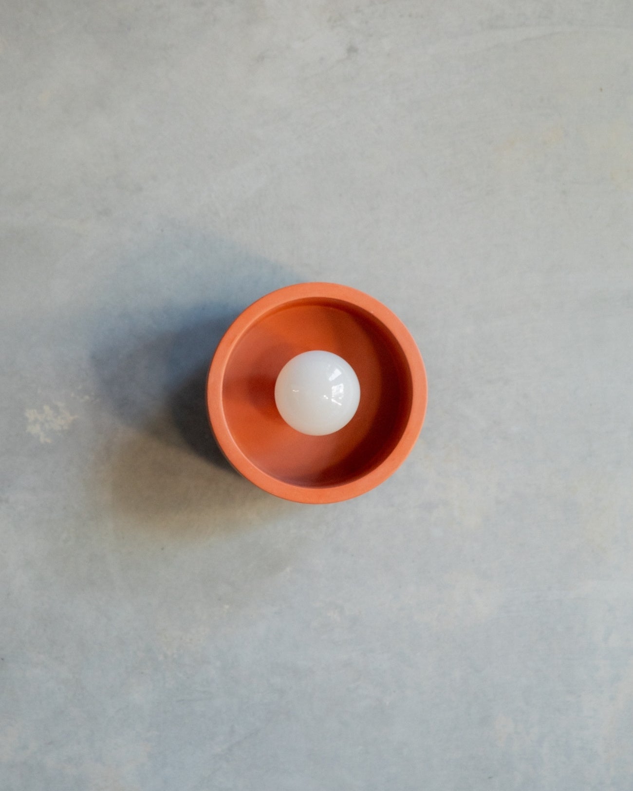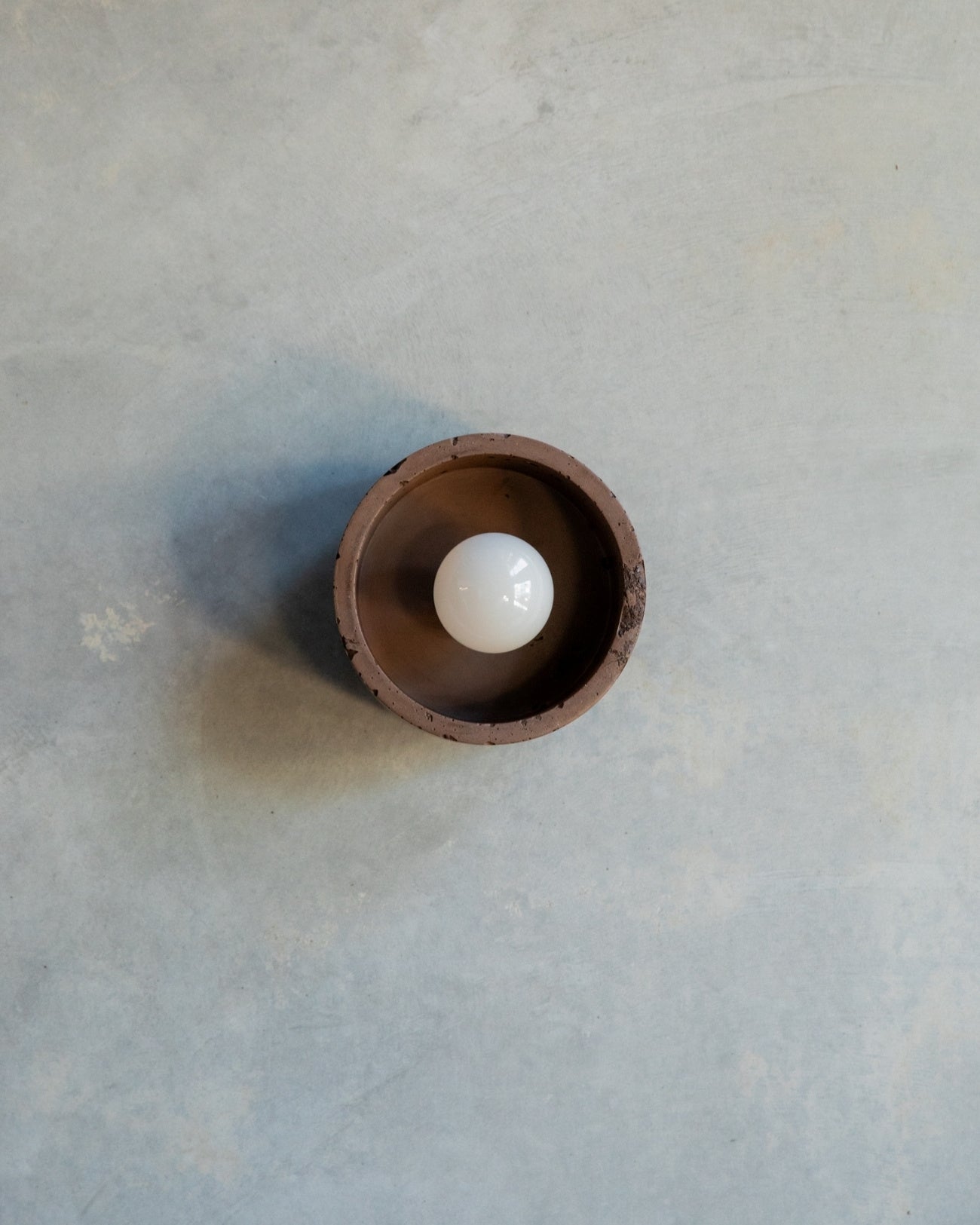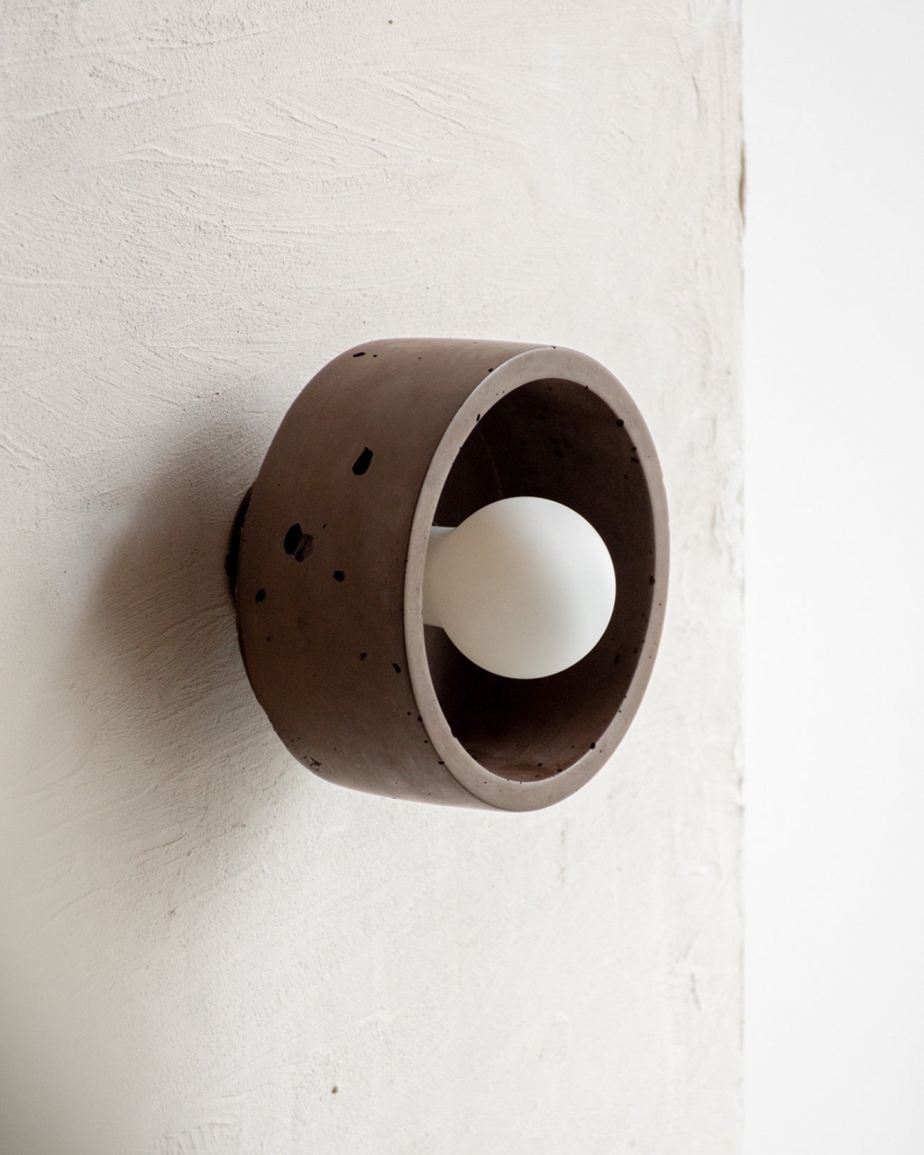 The Cylindrical Concrete Wall Light features a wide cylindrical design that blends minimalist elegance with raw materials. This fitting is made from concrete and glass fibres that are hand-poured locally in Ballina, and is available in a curated palette of earthy tones including charcoal, cocoa, bone white, sand, nude, terracotta, and moss. Perfect for adding soft, ambient illumination to hallways, living spaces, or bedrooms, its understated shape and natural finishes create a warm and inviting atmosphere.
