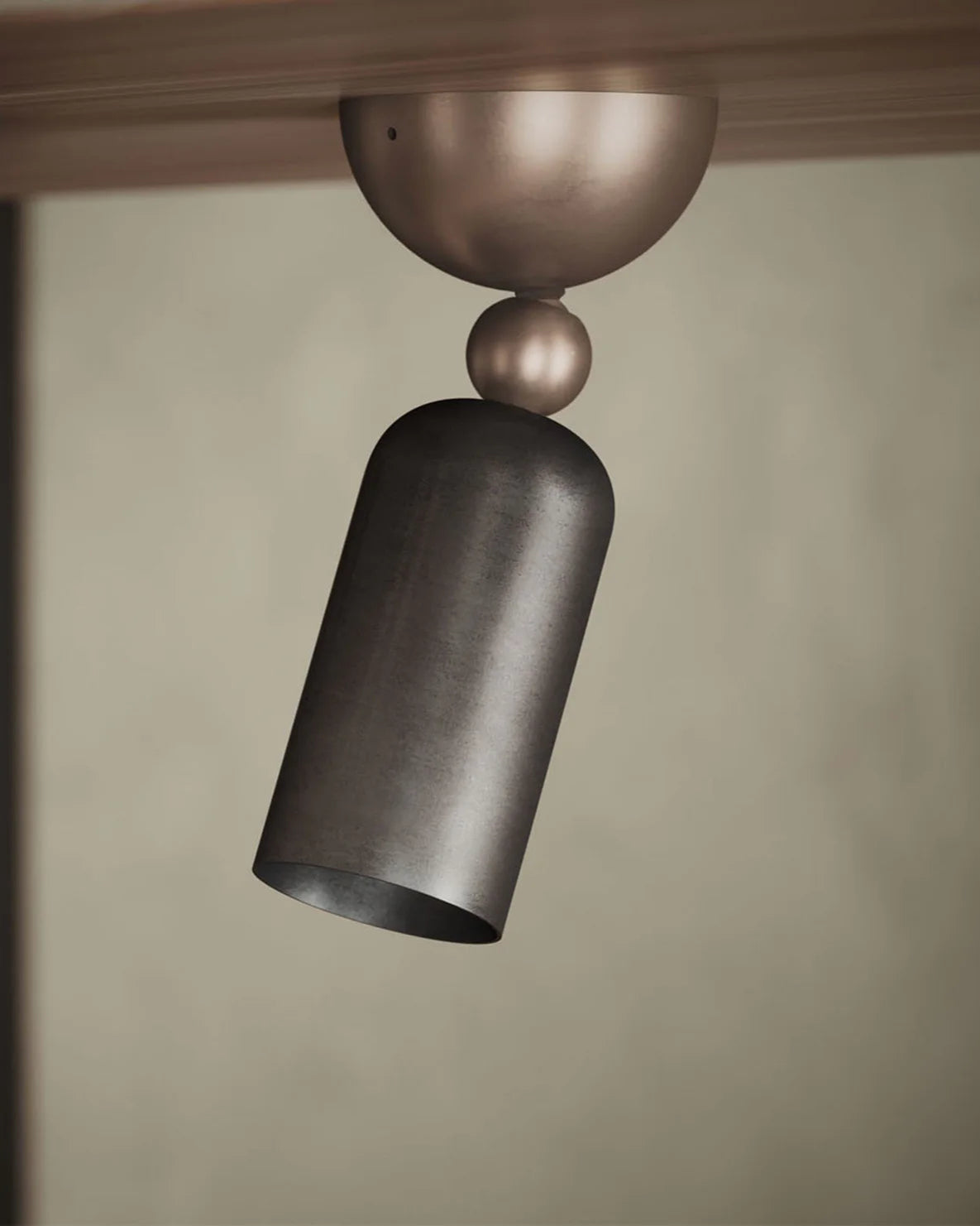 This dainty Italian design is carefully crafted from brass and showcases a meticulously proportioned form. This ceiling light's curved shape and rich finishes make this spotlight design ideal for adding a sophisticated touch to any interior space. Perfect for placement over a bar, kitchen island or lining a hallway. Available in a Natural Brass or two-toned Morocco & Grafene finish.