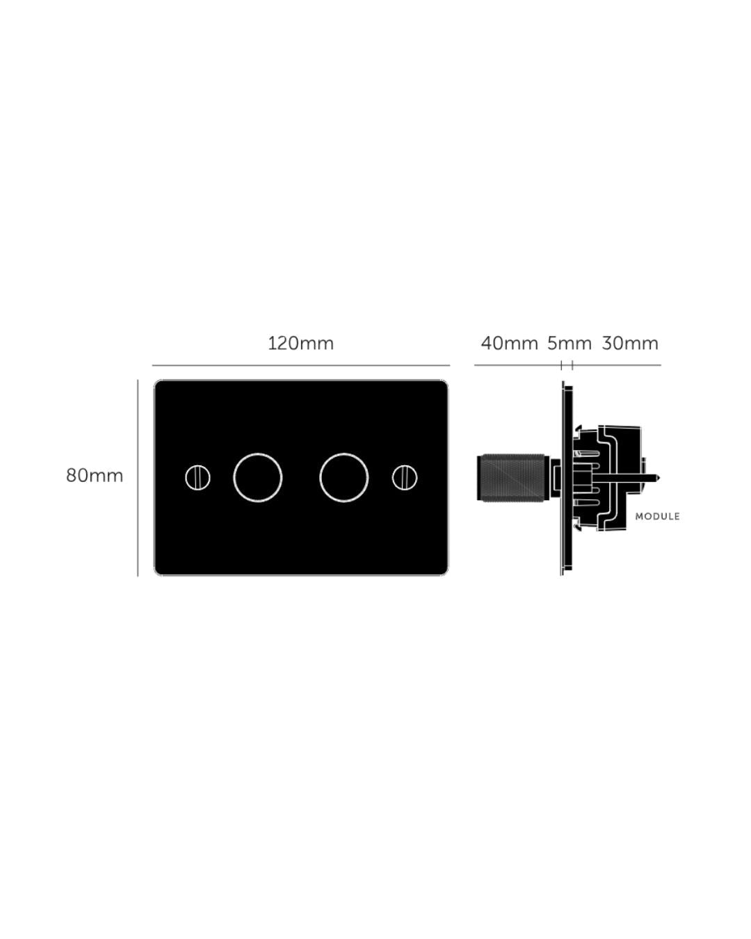 The Dimmer Switch is a high quality dimmer that can replace classic leading & trailing edge dimmers to match the cabinet hardware of any interior. Featuring diamond-cut knurled knobs in a single or double configuration. Available in Brass, Steel, Black or Smoked Bronze, with detail kits available to create a unique combination of metal finishes.