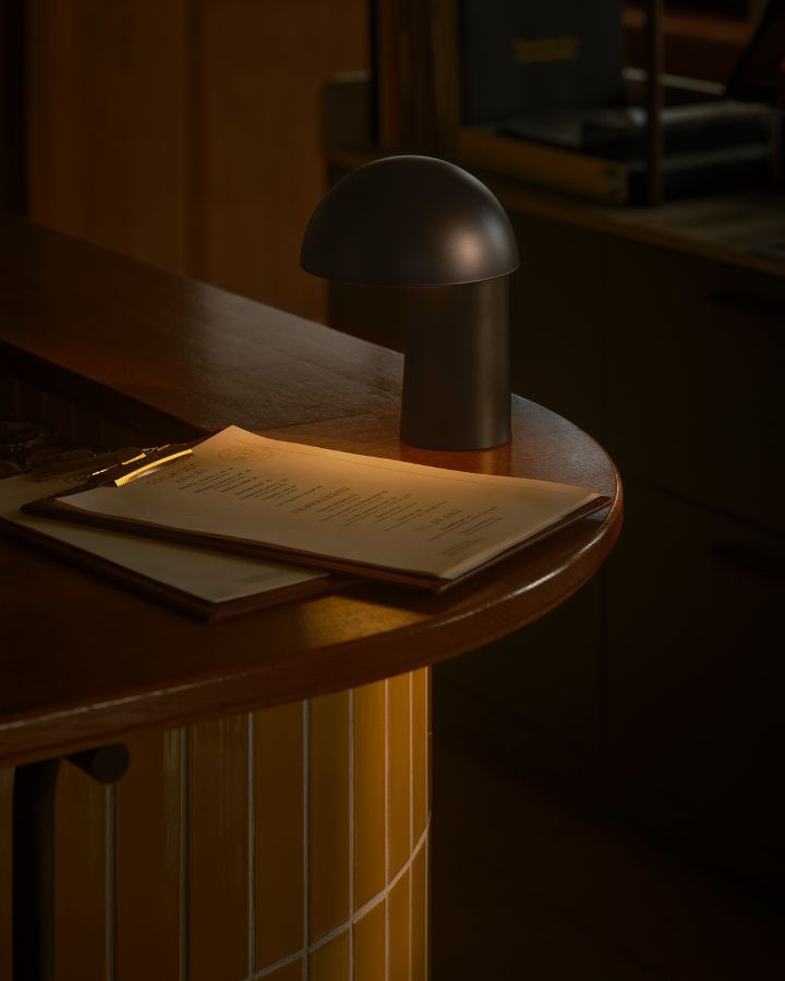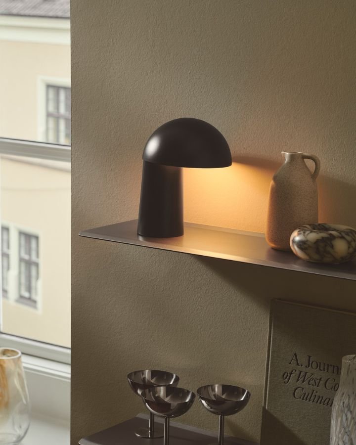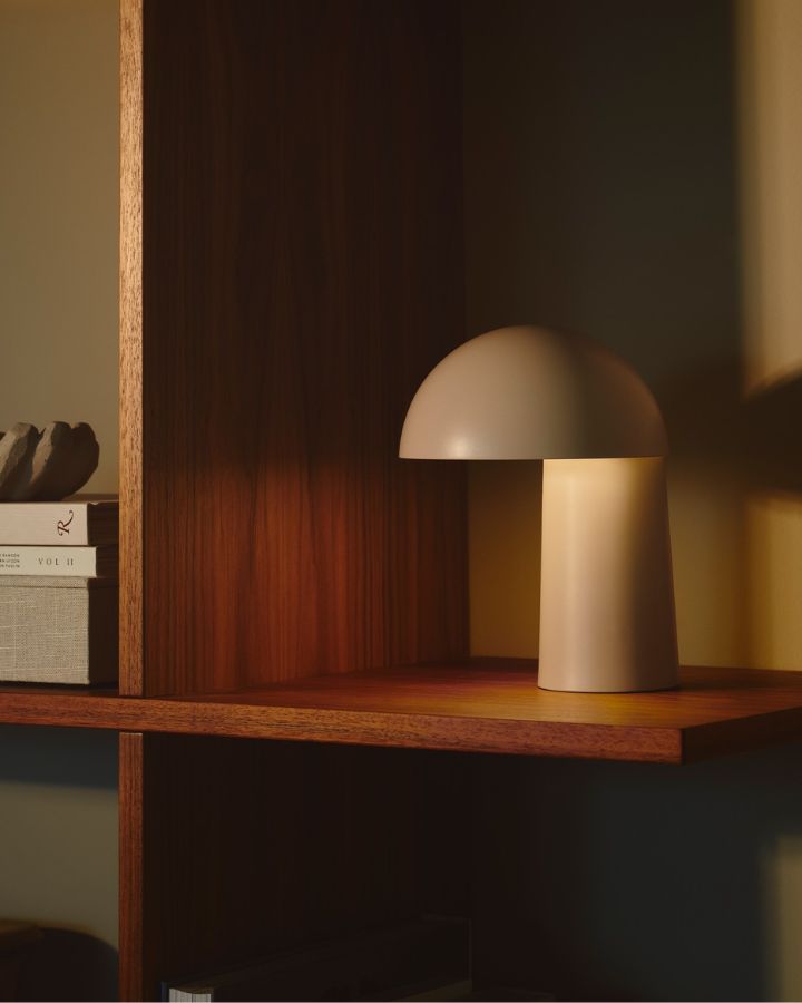 Dome Shade Portable Table Lamp is a compact rechargeable lamp that is inspired by Bauhaus and retro silhouettes. Move this lamp anywhere that needs more downward light, such as an outdoor table, the kitchen, or in a bedroom. Choose from a trendy beige or a classic black to suit the interior. Featuring a touch dimmer on the back of the fitting.