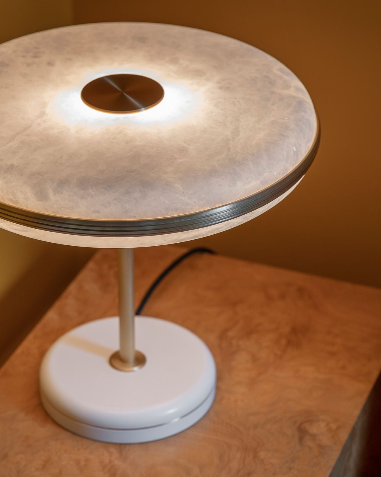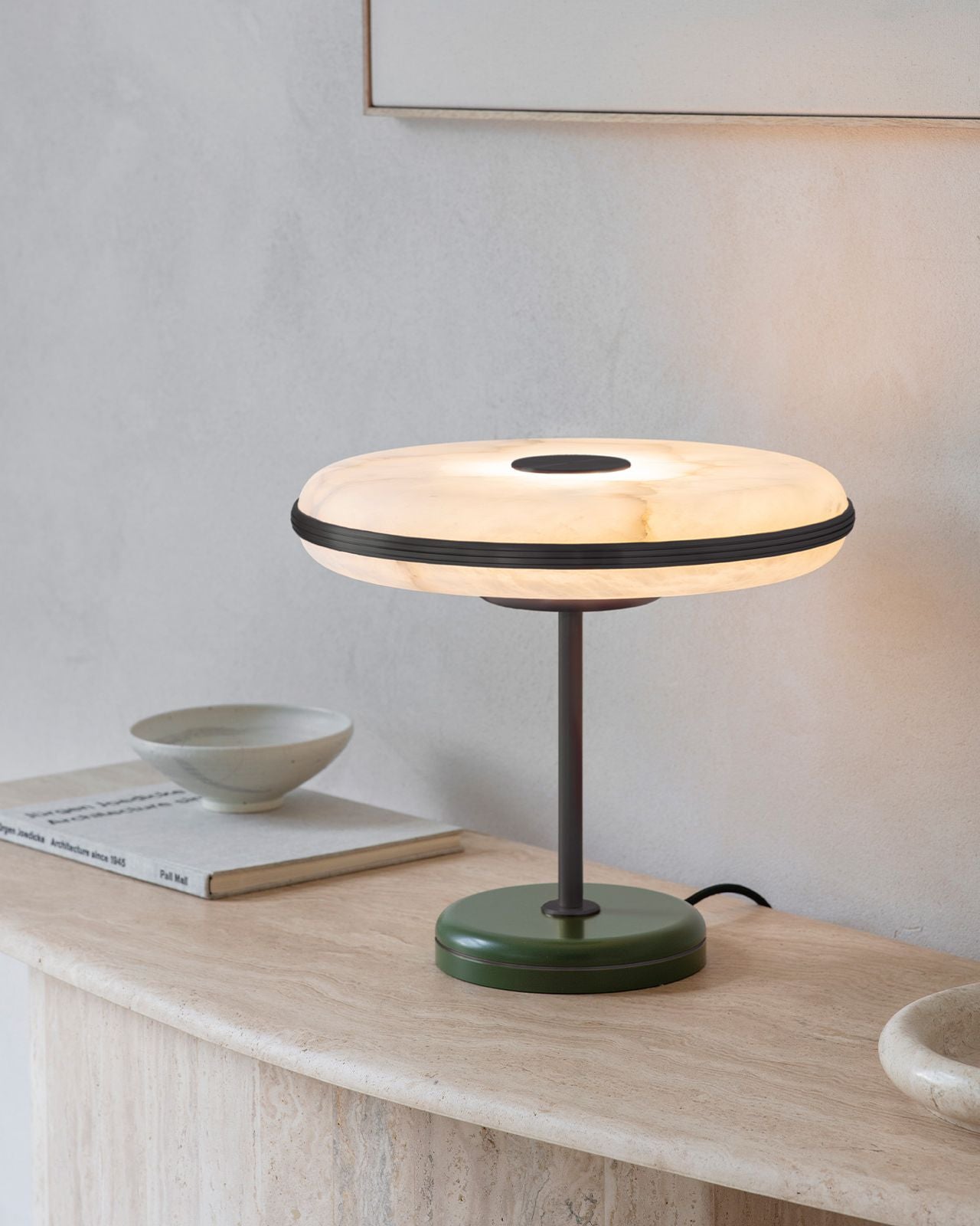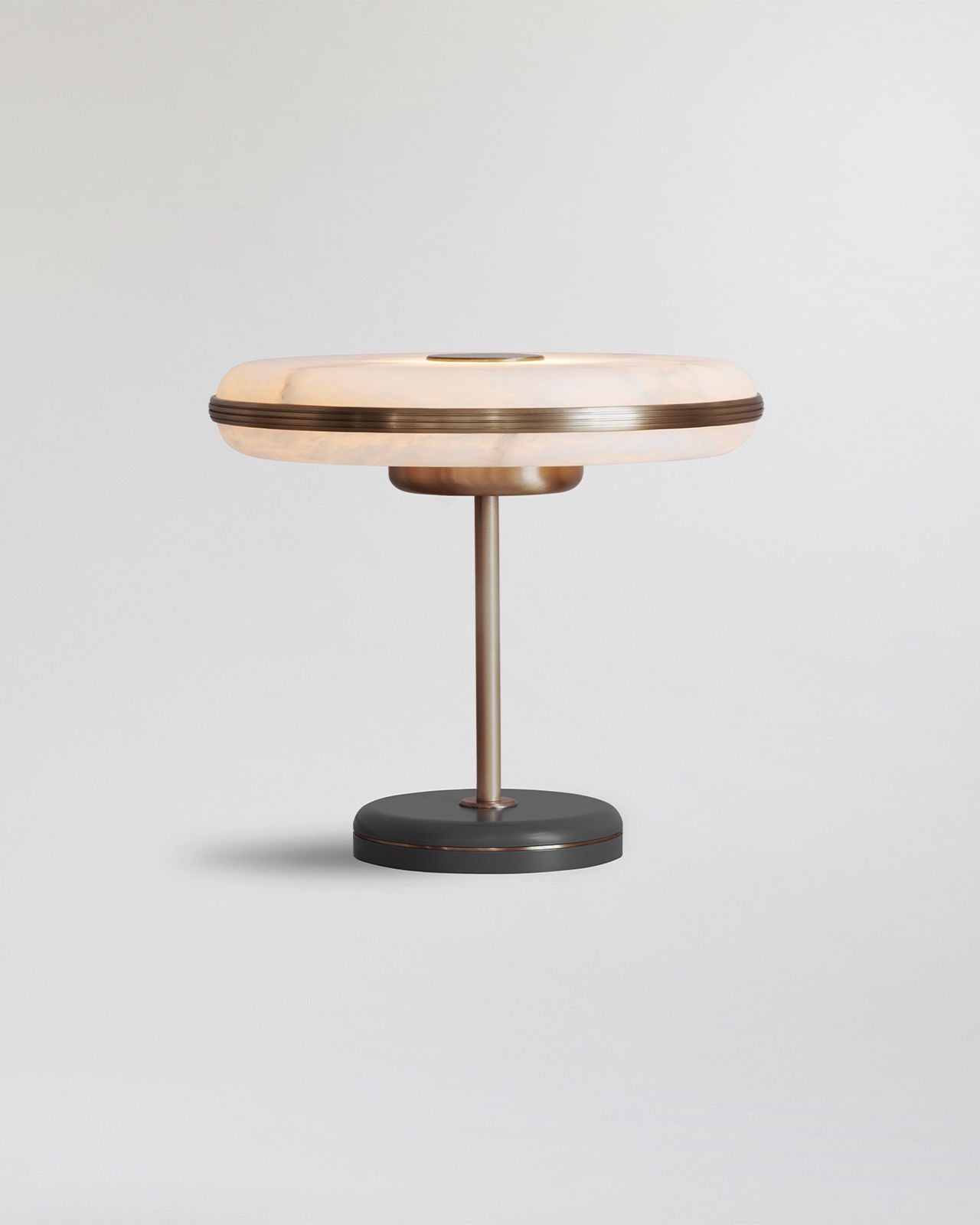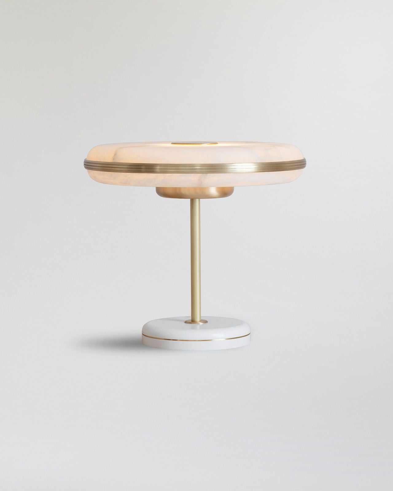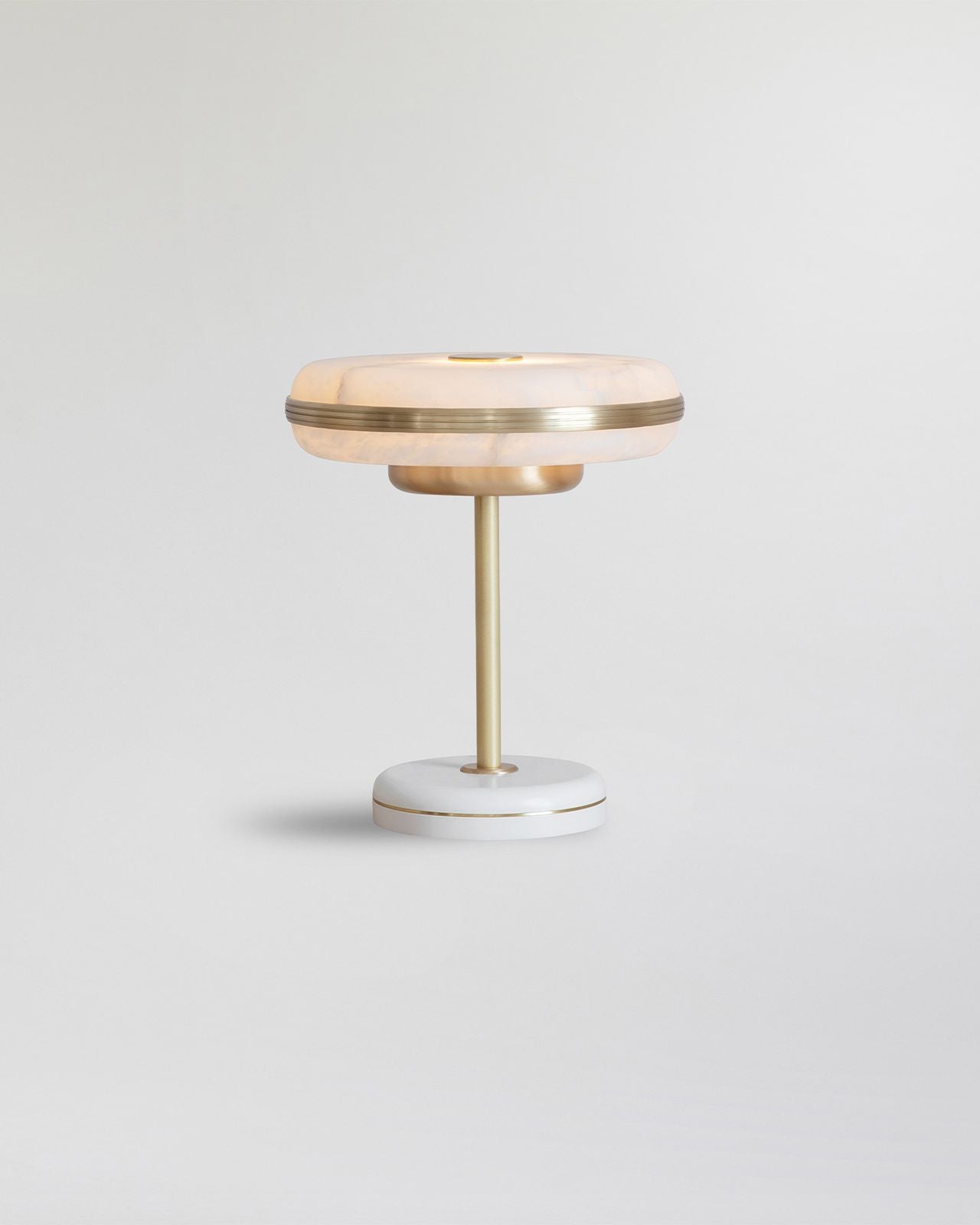 As a result of an elegant dance between traditional raw materials and modern engineering, this table lamp will make a statement to interiors. Casting a gentle light thanks to the alabaster stone, this fixture features a round diffuser sitting upon a solid brass structure, available in a range of finishes. The contrasting colours effortlessly transform this expressive lamp.
