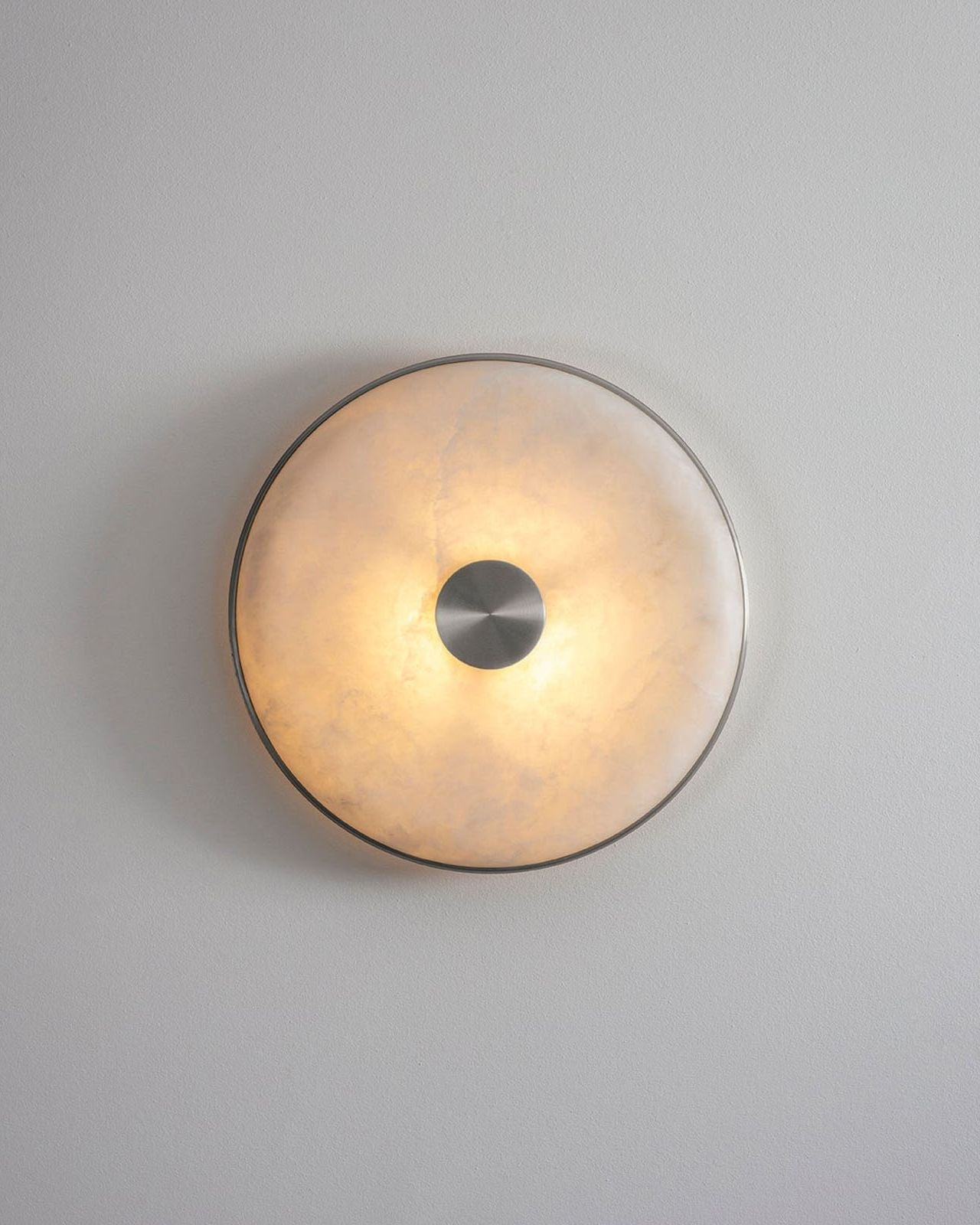 Meticulously crafted from the finest natural creamy white alabaster in the Aragon region of Spain, this wall light will diffuse a very gentle light creating a welcoming and calm atmosphere. Simple yet elegant, Alabaster stone is soft in appearance though highly robust. Available in two sizes and IP65 rated, this fixture is suitable to be installed in bathroom wet areas,