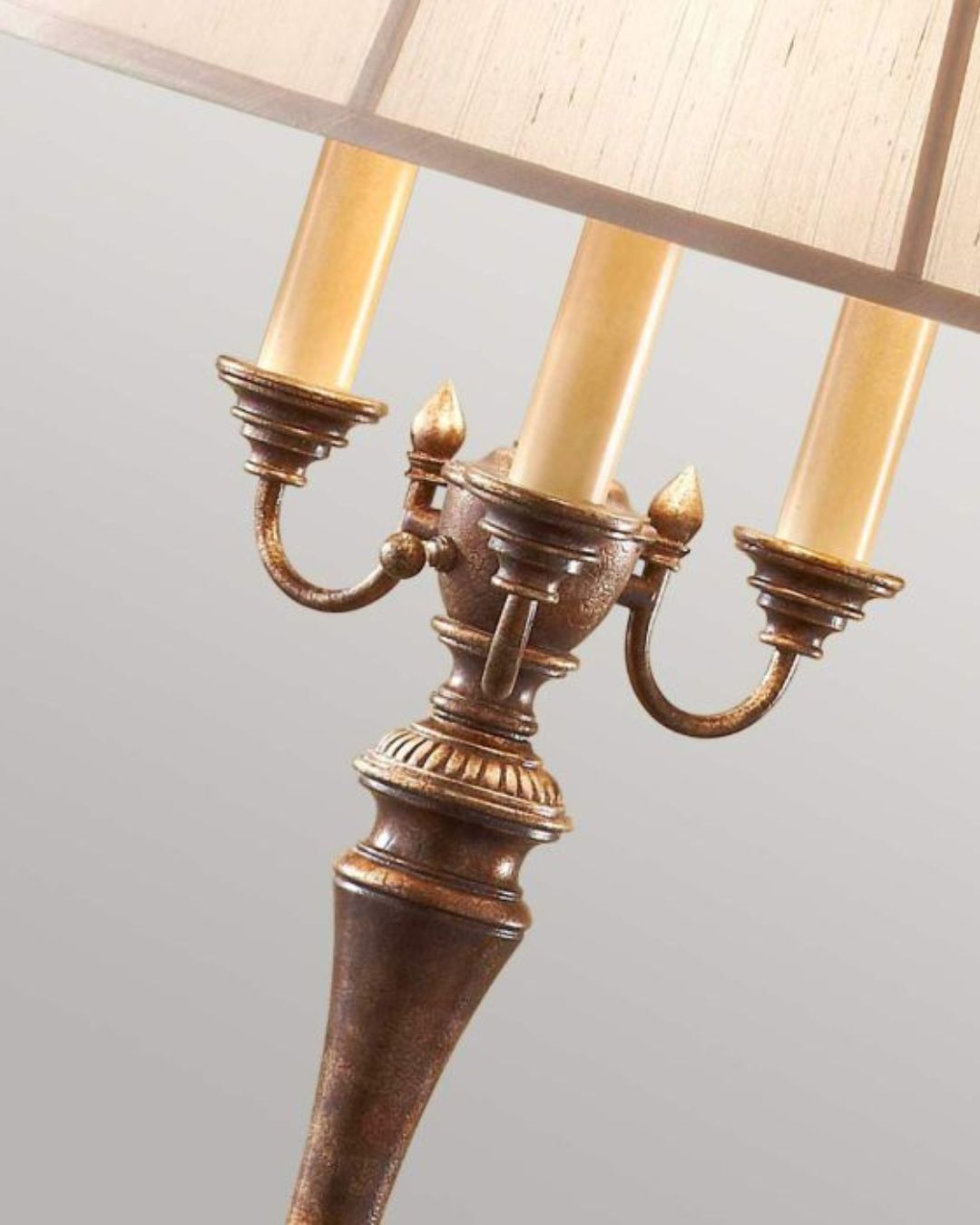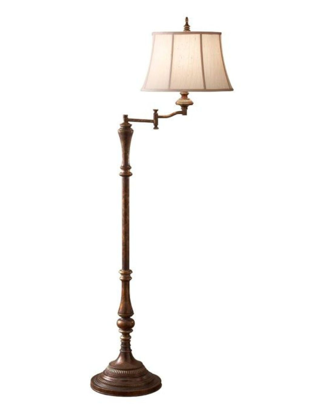 The Elegant Crackle Floor Lamps feature a classic style to add a touch of vintage quality and luxury to interior spaces. Crafted from steel, these fixtures also incorporate a Cambridge Crackle finish with a mottled, dark brown appearance and a Desert Linen fabric shade, both enhancing the visual interest and depth. The 1 Light version features a moveable swing arm, ideal for use as a reading lamp in a bedroom or living space. The 4 Light version features a traditional stem and base with an elegant silhouette. Both are perfect for encompassing a traditional and timeless style.