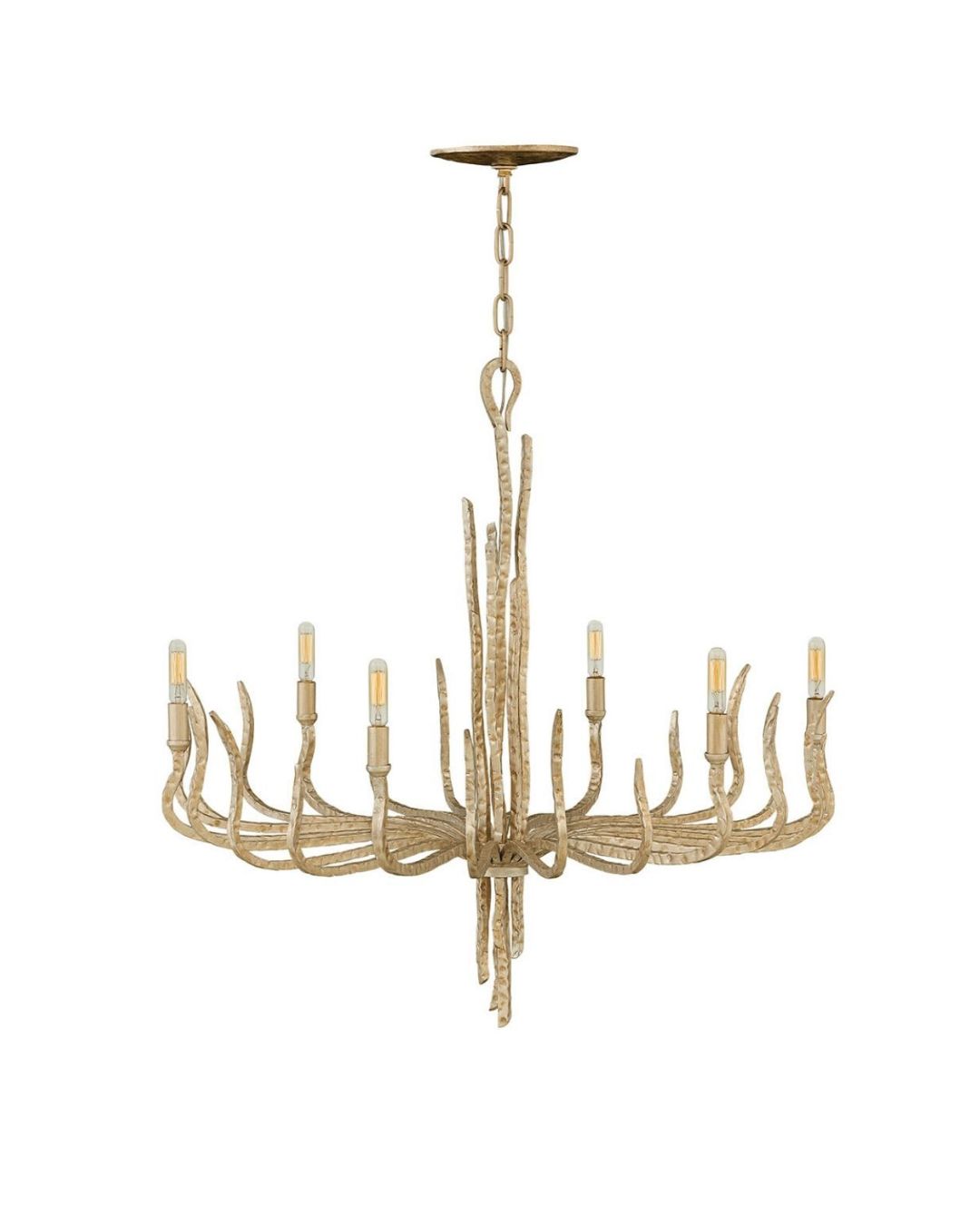 Elegant Large Metallic Chandelier, 6 Lights, Champagne Gold