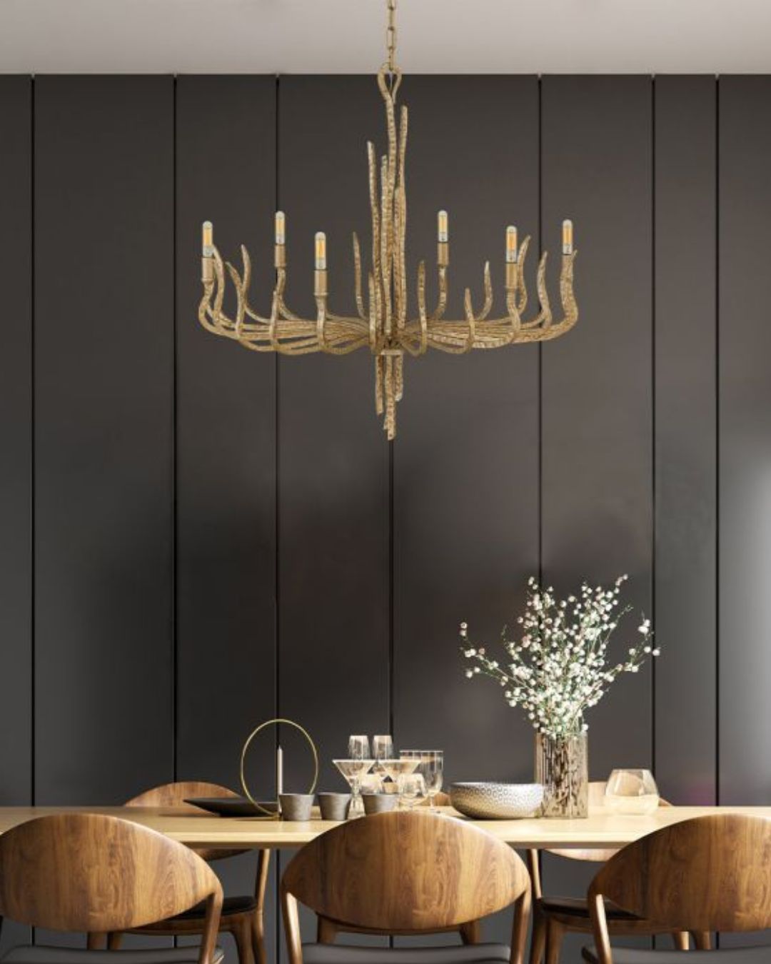 This contemporary organic design makes a statement with its gorgeous hand hammered metallic matte bronze and champagne gold finishes. This artisan piece demands attention with its elegant silhouette and would bring a feature to a studio, workplace, our your dining room, foyer or bedroom.