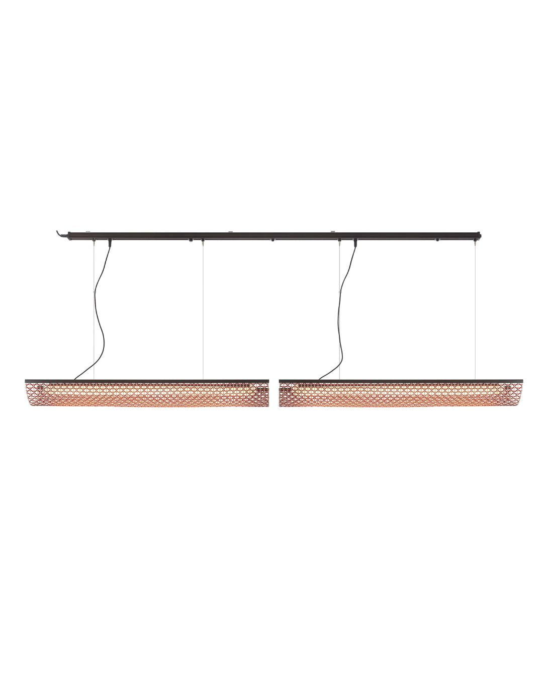 Crafted and designed in Barcelona, the Exterior Linear Pendant Track Light system is designed to integrate seamlessly along the provided exterior-rated track, while allowing for effortless repositioning to create different lighting compositions. Its interesting woven design, premium materials, and variety of balanced proportions ensure a sophisticated presence that complements a variety of exteriors.