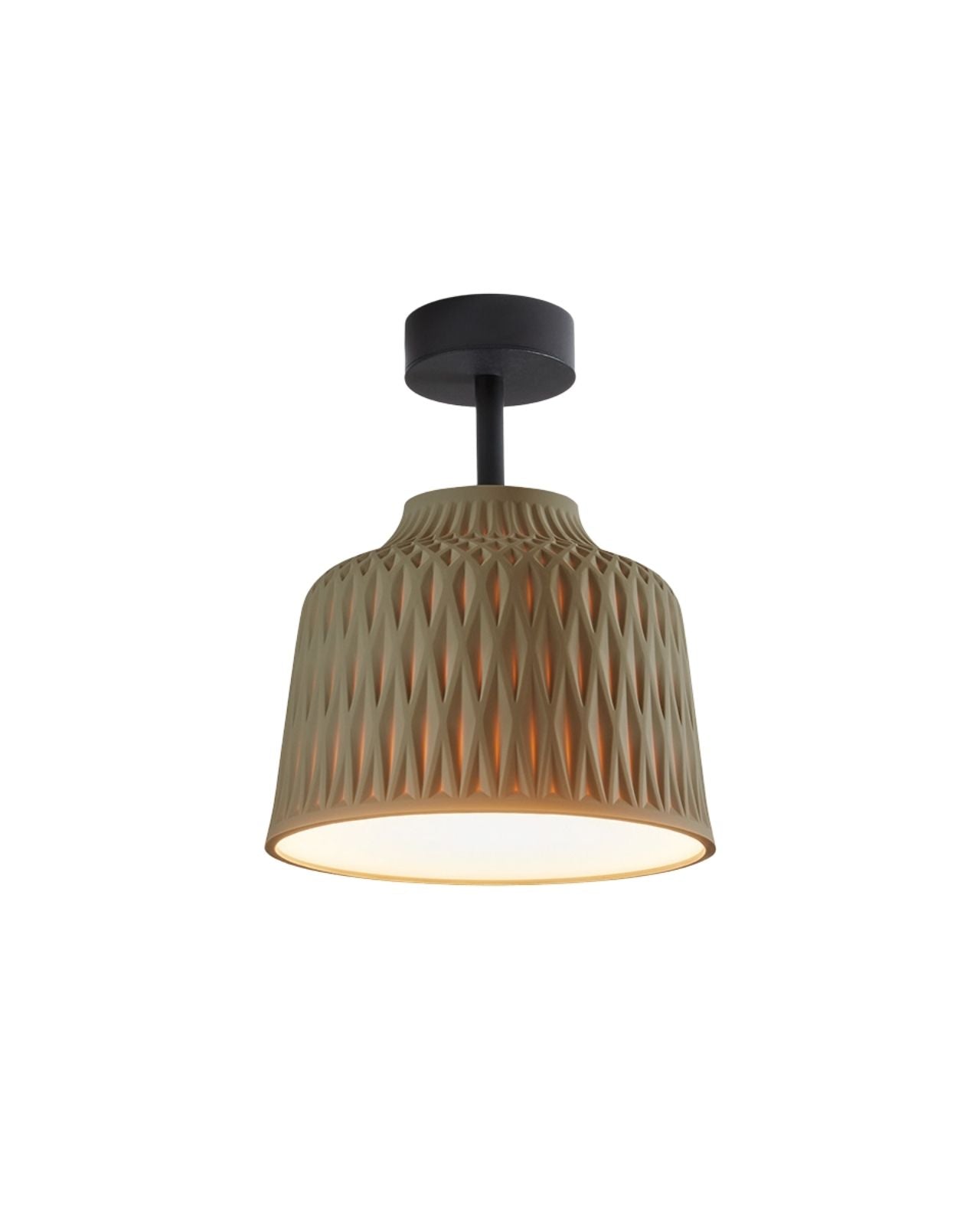 Crafted and designed in Barcelona, the Exterior Silicone Ceiling Light is a highly versatile ceiling fixture offered in three finishes: Ochre, Light Grey, and Olive Grey. Made from silicone, this innovative material provides numerous advantages. The semi-transparency of the silicone allows the fixture to emit a soft glow from its interior. Additionally, the fitting can be effortlessly taken apart for quick and thorough cleaning. Taking inspiration from the intricate patterns of Bohemian glass, this unique ceiling light serves as a standout focal point and is highly suitable for use in inclement conditions.