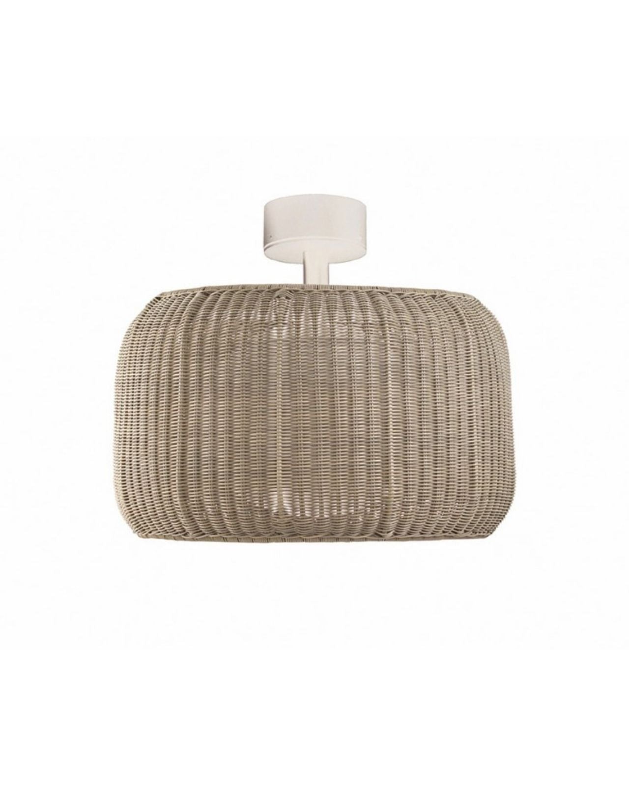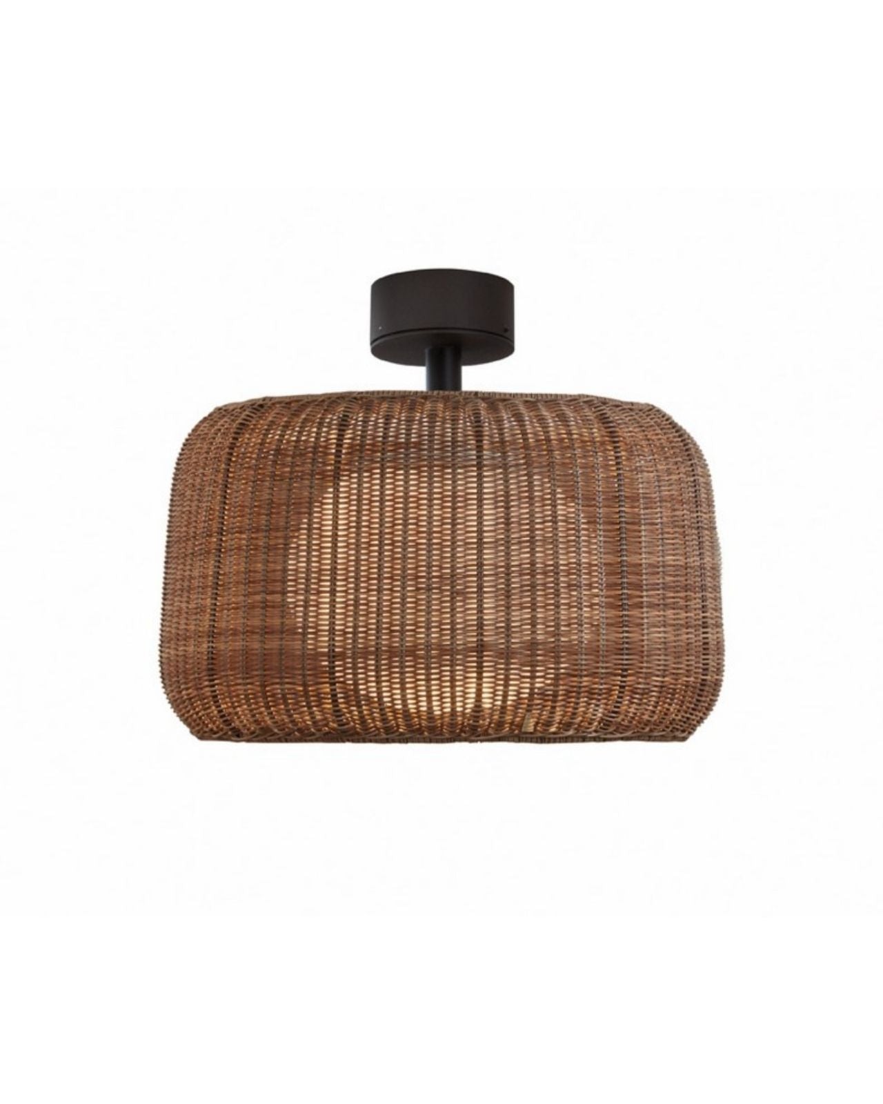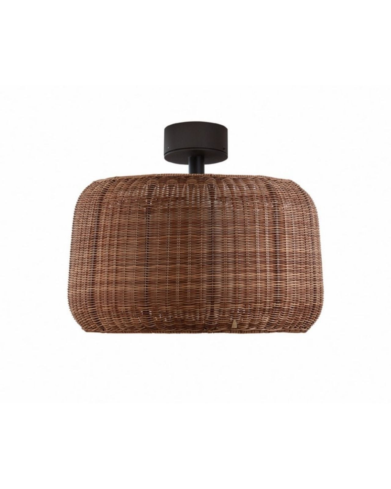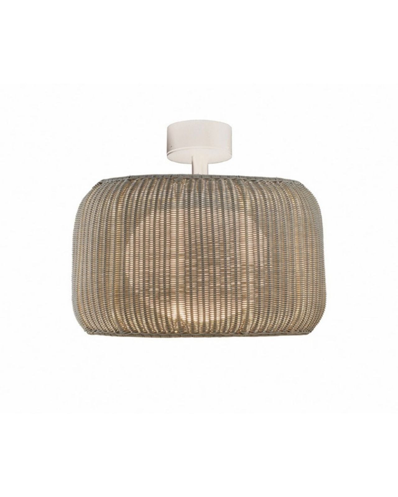 Designed and crafted in Barcelona, Spain, this exterior ceiling light combines style and durability with its woven synthetic wicker shade, which is designed to withstand the elements. Featuring an IP66 rating, offering protection against water and dust, while a polythene diffuser inside the shade ensures extra water-tight security. Ideal for both indoor and outdoor spaces, the woven shade allows a warm, inviting glow to be emitted. Available in two finishes: a light beige shade with a natural white bracket or a brown rattan shade with a graphite brown bracket