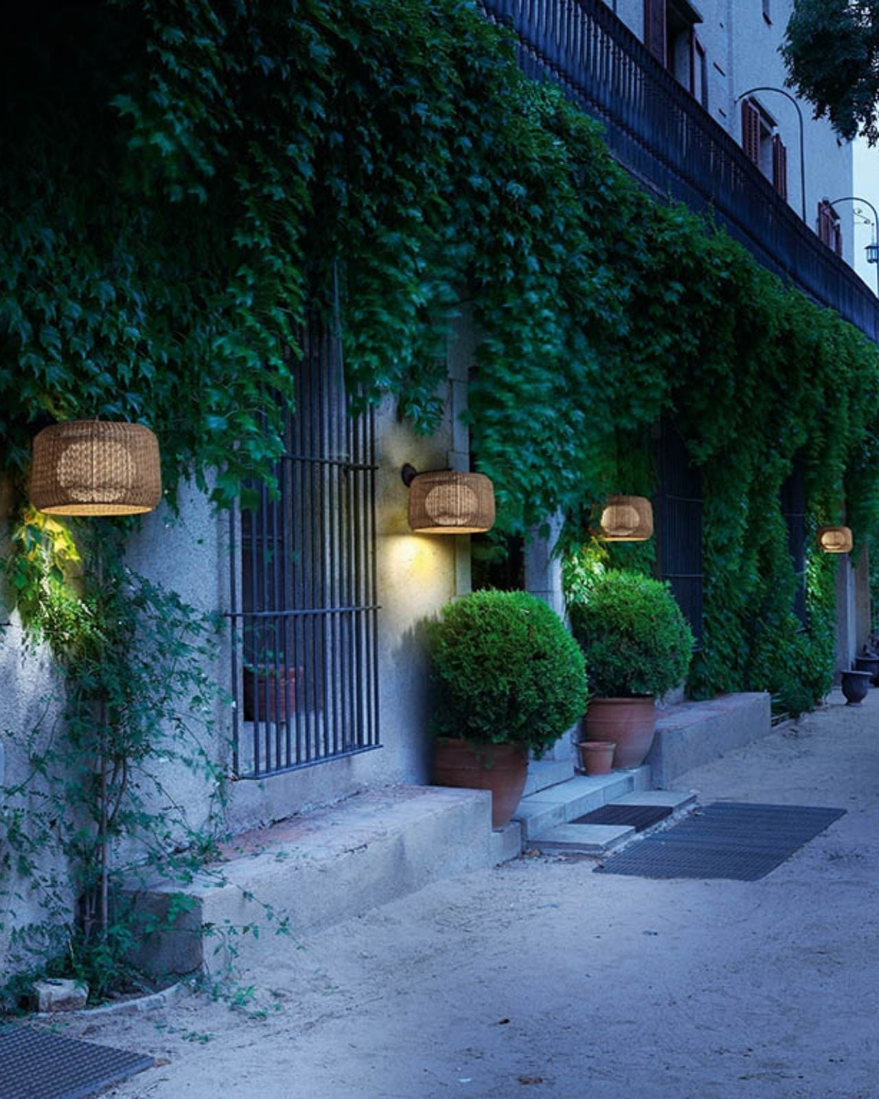 Exterior Woven Basket Wall Light - Light Beige