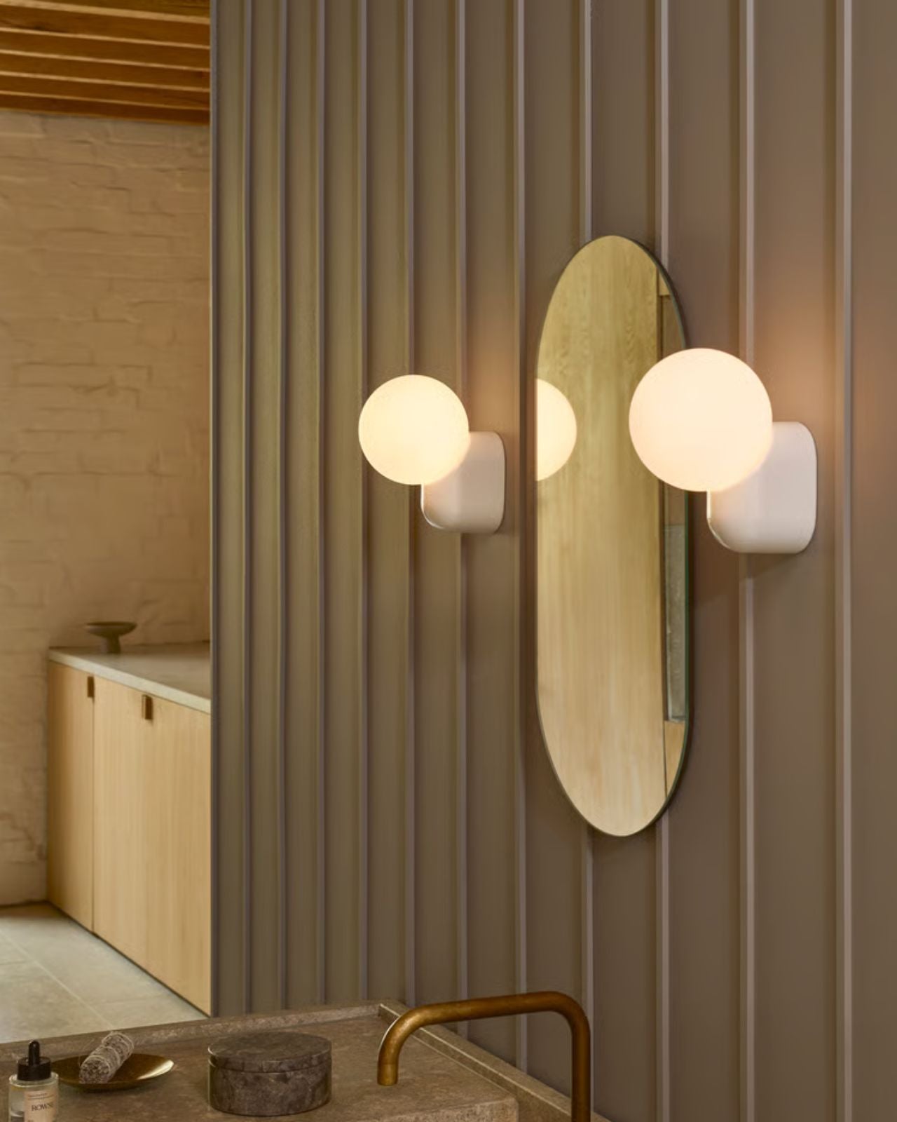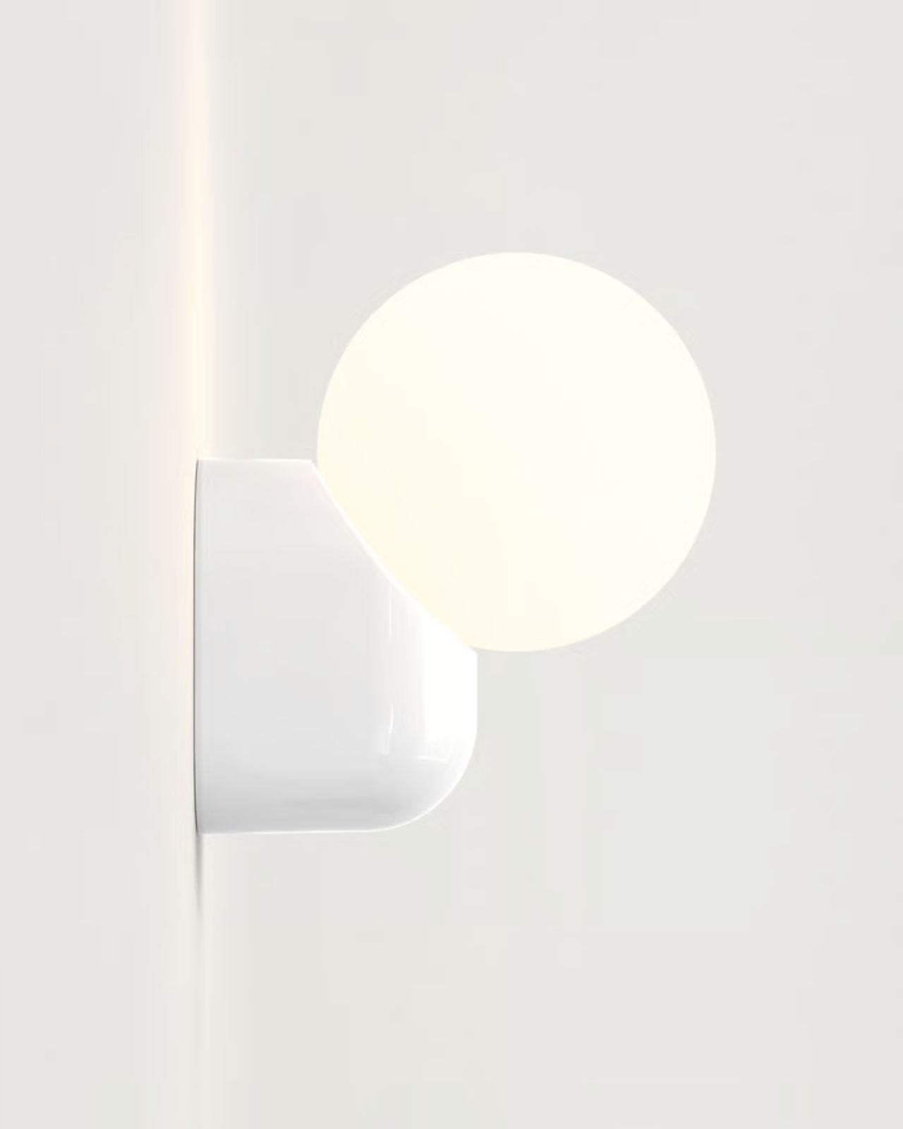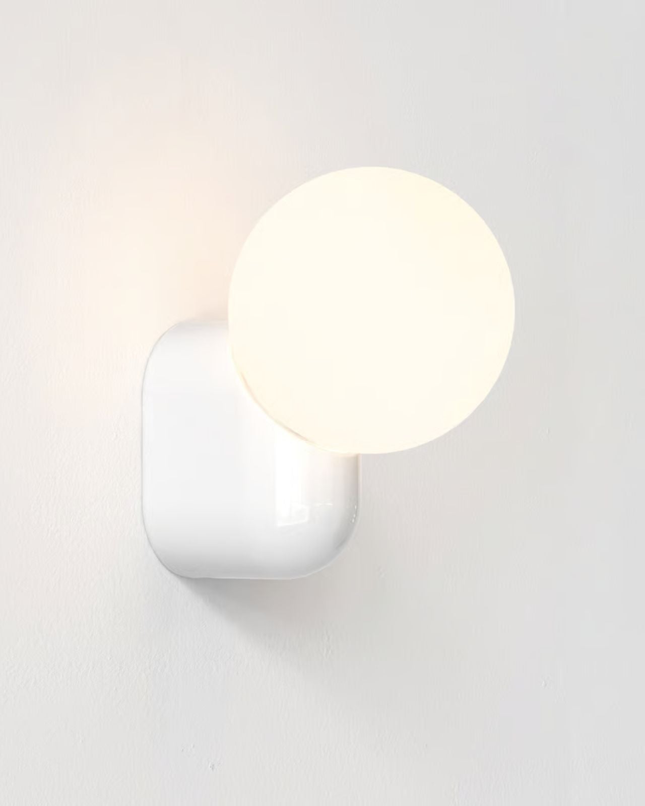 This contemporary wall light features a glossy ceramic base and duplex glass globe, lending any modern bathroom interior a stylish flair. Its IP44-rated construction ensures safe, reliable use for years to come. Boasting an extremely durable ceramic base and glass shade, this light is ideal for providing warm, comfortable lighting in bathrooms, hallways or bedrooms.