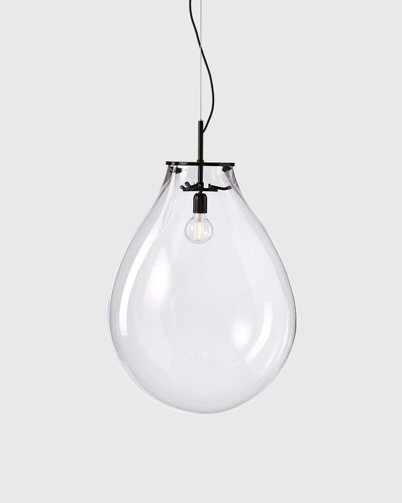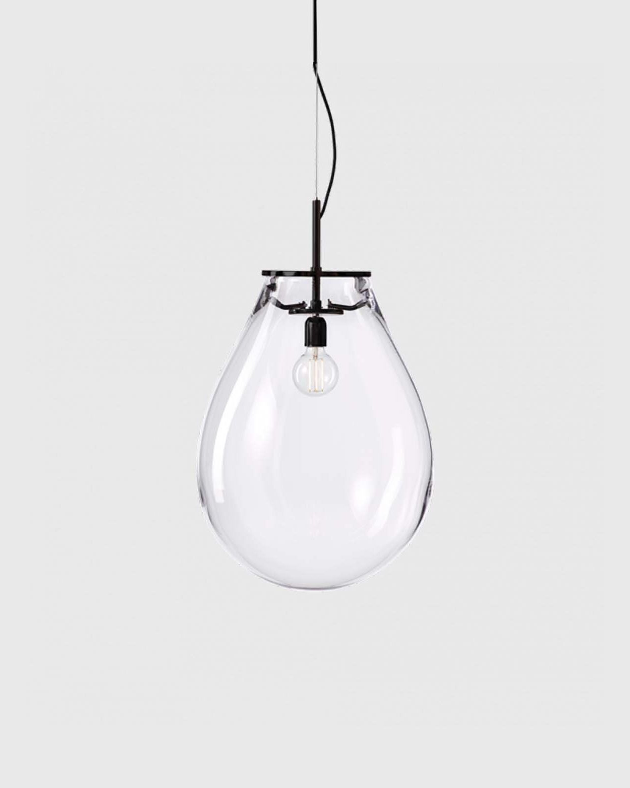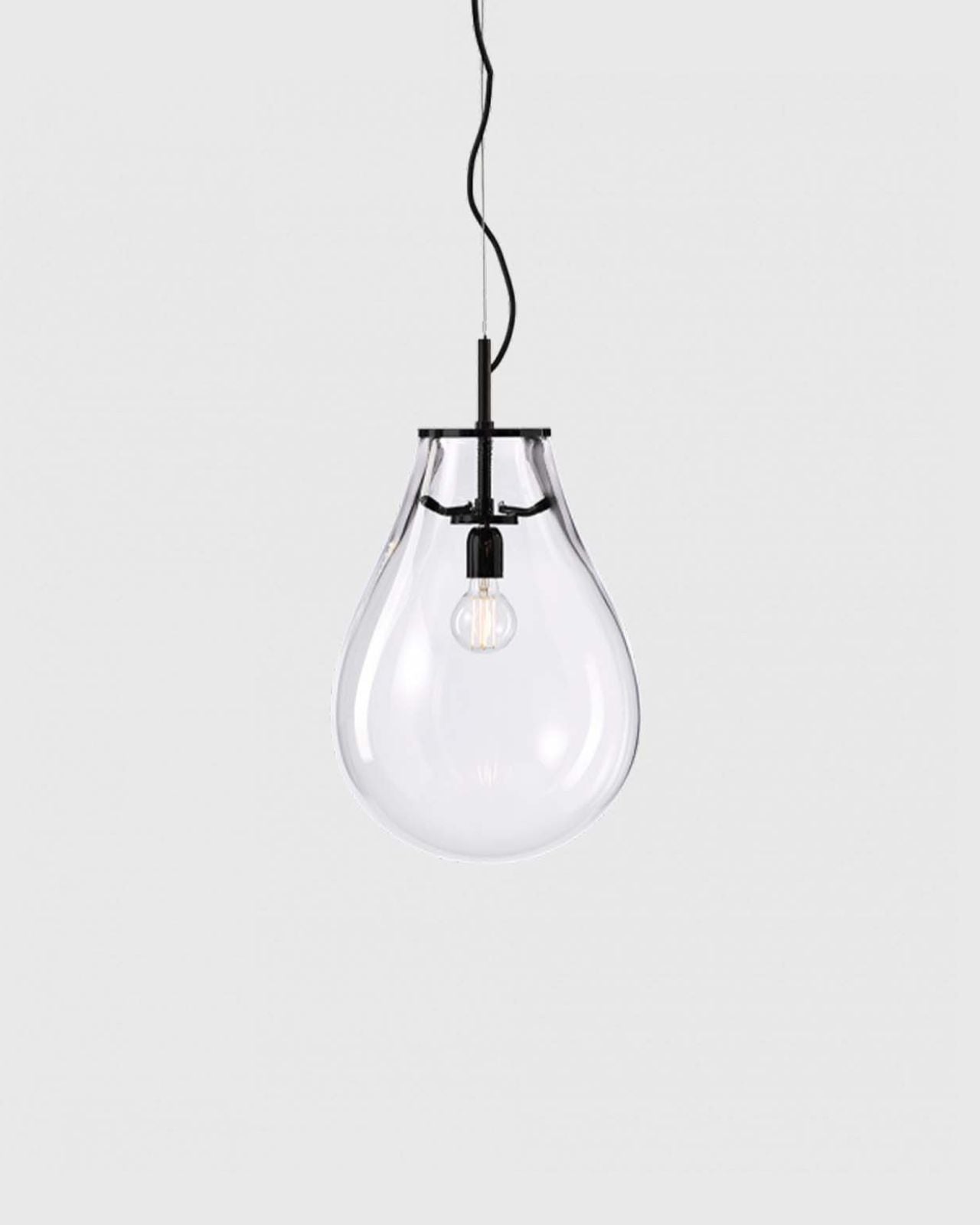 Hand-Blown Glass Droplet Pendant Light | Tim - Small / Clear / Black Steel