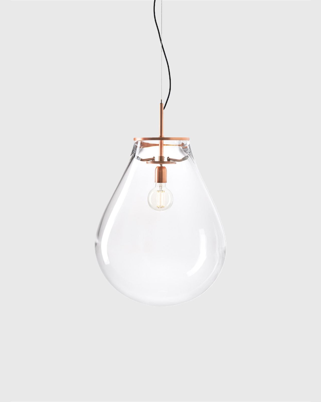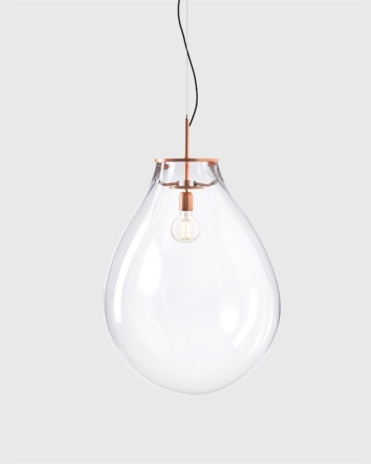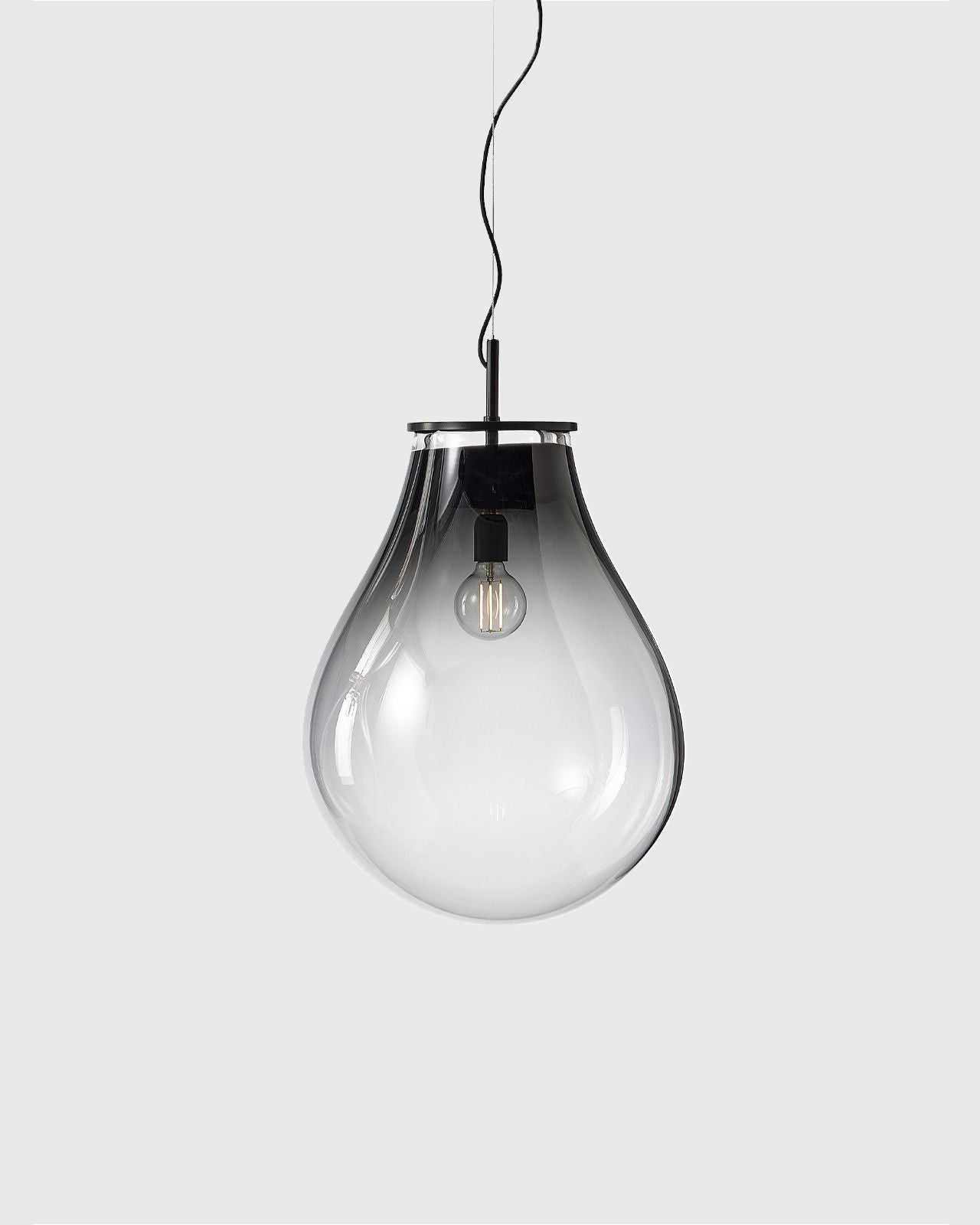 This impression pendant light embodies design simplicity and glassmaking mastery. Achieved by free-form mouth blowing, the clear or smoked grey modern cupola in the form of a droplet and mounted on a brushed copper, silver or black minimalist structure and suspended by a 2500mm cable will enhance dining rooms, living rooms, entrance halls or restaurants. This stunning fixture will be the centrepiece in interiors and will look great on its own or as a cluster to create unique and artistic compositions in space by playing with the sizes and finishes. The inspiration for this unique pendant was a collaboration with the world-renowned director Tim Burton, during one of his exhibitions.