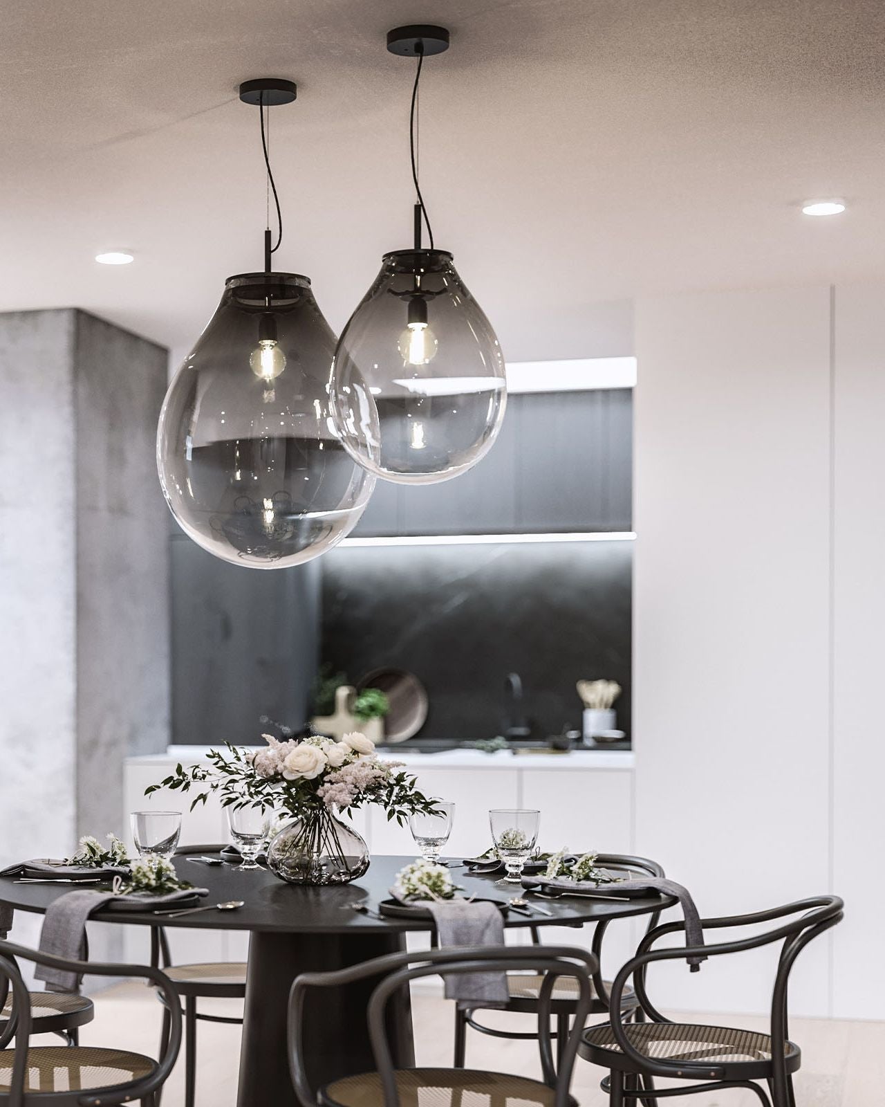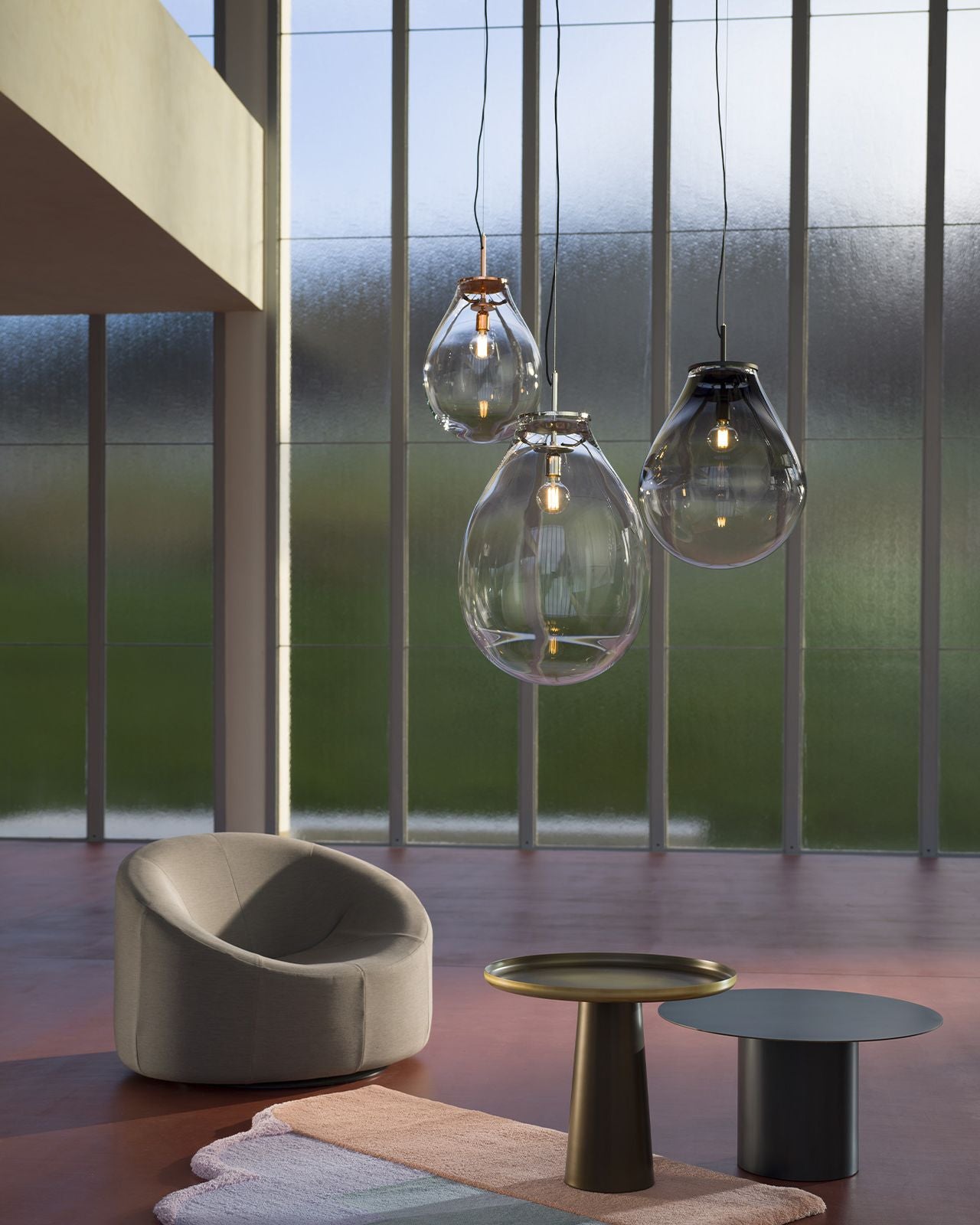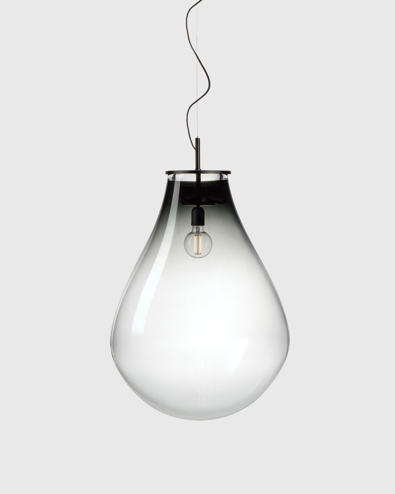 This impression pendant light embodies design simplicity and glassmaking mastery. Achieved by free-form mouth blowing, the clear or smoked grey modern cupola in the form of a droplet and mounted on a brushed copper, silver or black minimalist structure and suspended by a 2500mm cable will enhance dining rooms, living rooms, entrance halls or restaurants. This stunning fixture will be the centrepiece in interiors and will look great on its own or as a cluster to create unique and artistic compositions in space by playing with the sizes and finishes. The inspiration for this unique pendant was a collaboration with the world-renowned director Tim Burton, during one of his exhibitions.