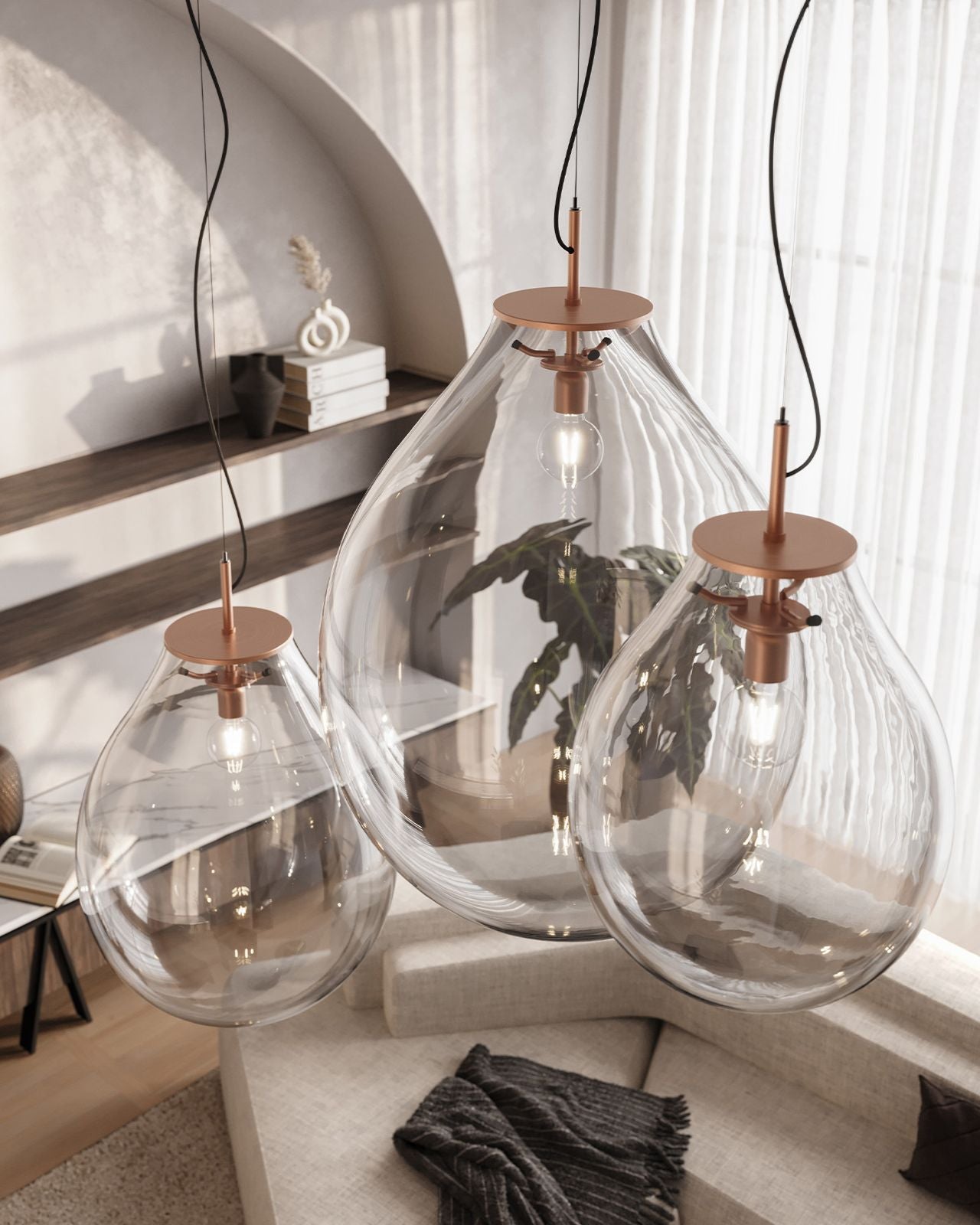 Please Note: The glass is mouth-blown therefore the shape and size may slightly vary. Each piece is completely unrepeatable and unique. Chandelier and multi hanging systems available for this product. Please get in contact if we are able to assist with these options.