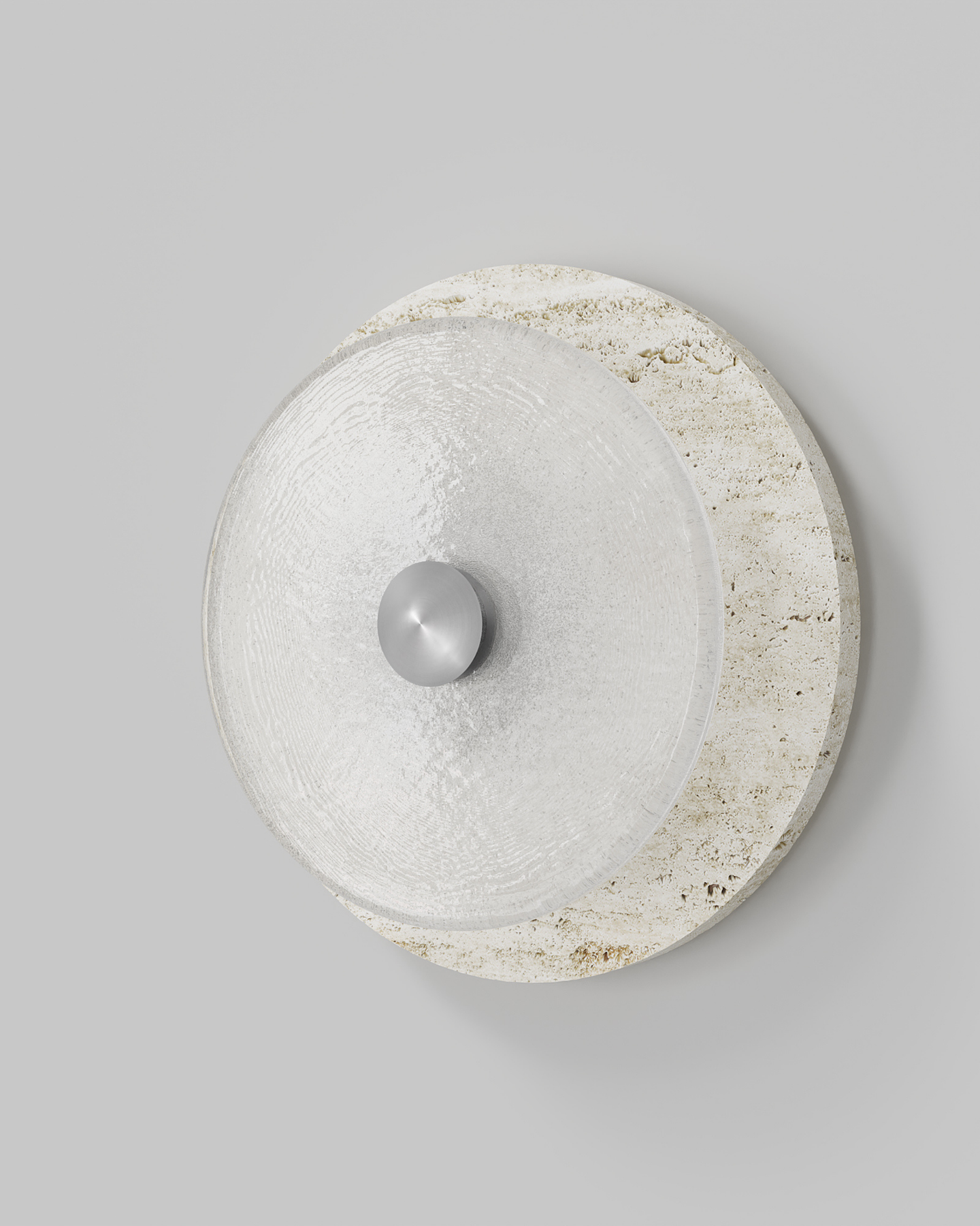 Designed and handmade by Oliver Höglund & Ryan Roberts in Currumbin Australia, the Handmade Travertine Coral Wall Light, will bring a touch of elegance to elevate a modern interior space. Featuring a free-formation design of the frosted glass disc, paired with an organic travertine material to create a unique aesthetic wall sconce. Handmade in Australia, the fitting is hand-blown at one thousand degrees Celsius and will provide a stunning light effect in living rooms or bedrooms spreading warm and soft light in the surroundings. Available in five beautiful finishes Brass, Bronze, Matte Black, Matte White, and Chrome finishes.