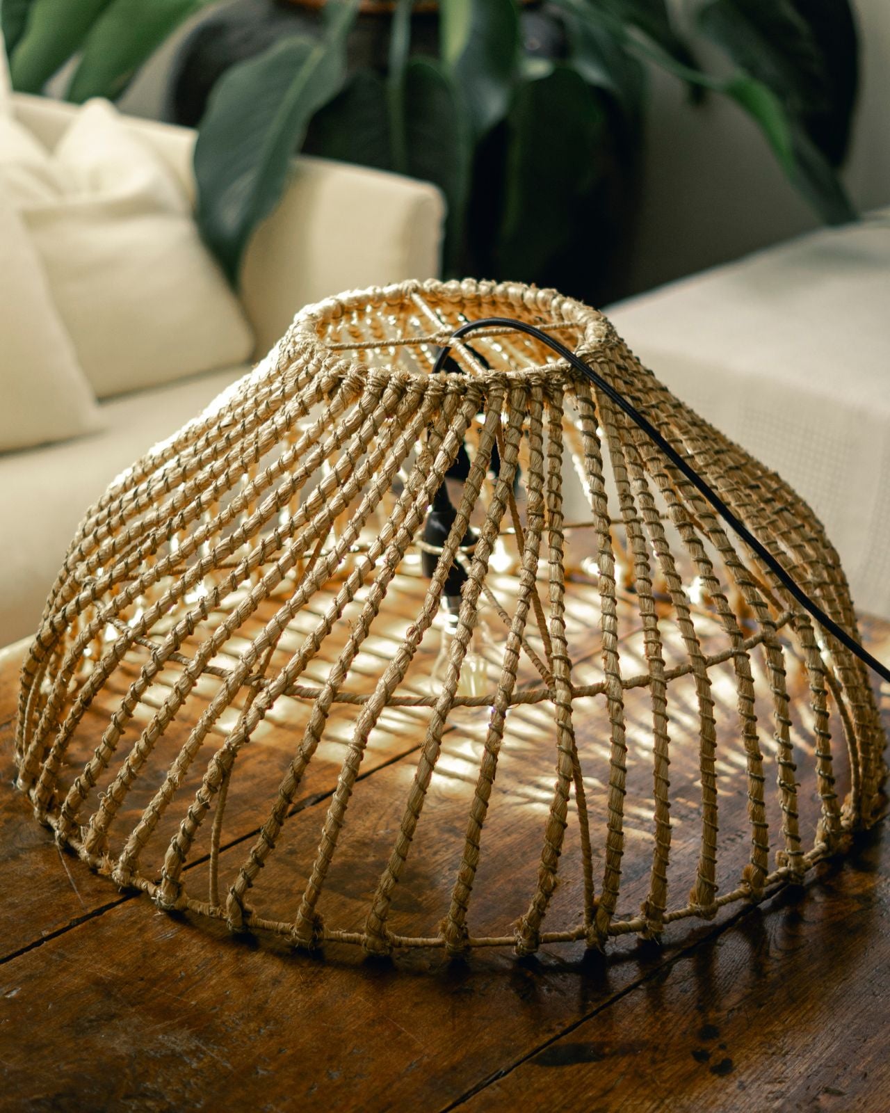 Handwoven Pendant Styled in Coastal Living Room