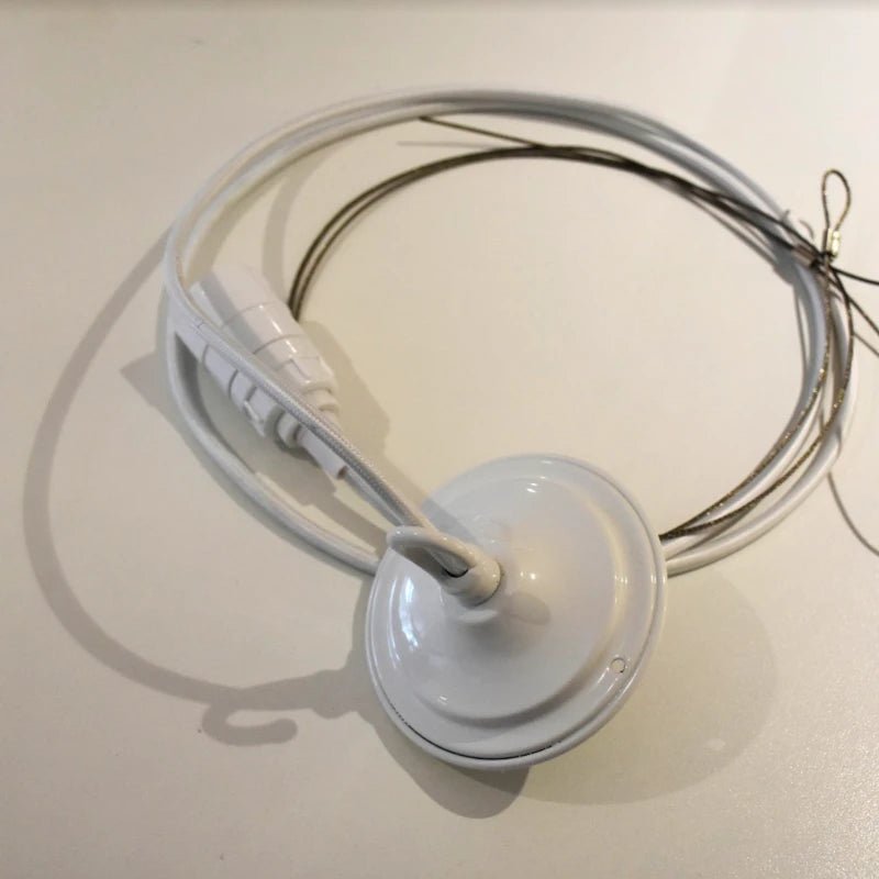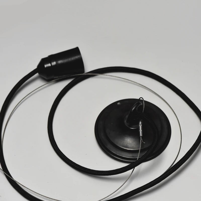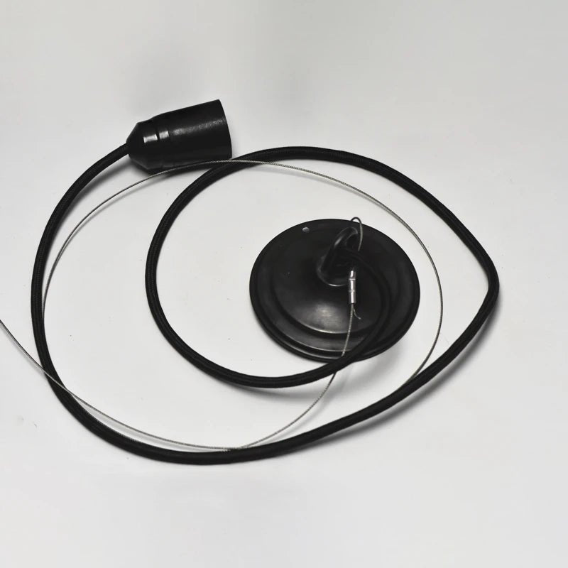 A heavy-duty suspension kit suitable for larger pendants is available with a 1500mm black or White three-core cloth flex cord, ceiling hook, and suspension cable.