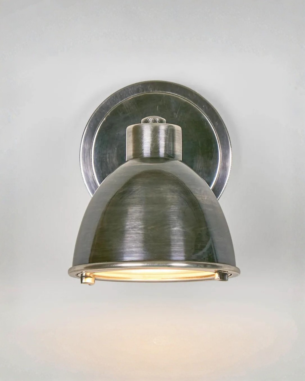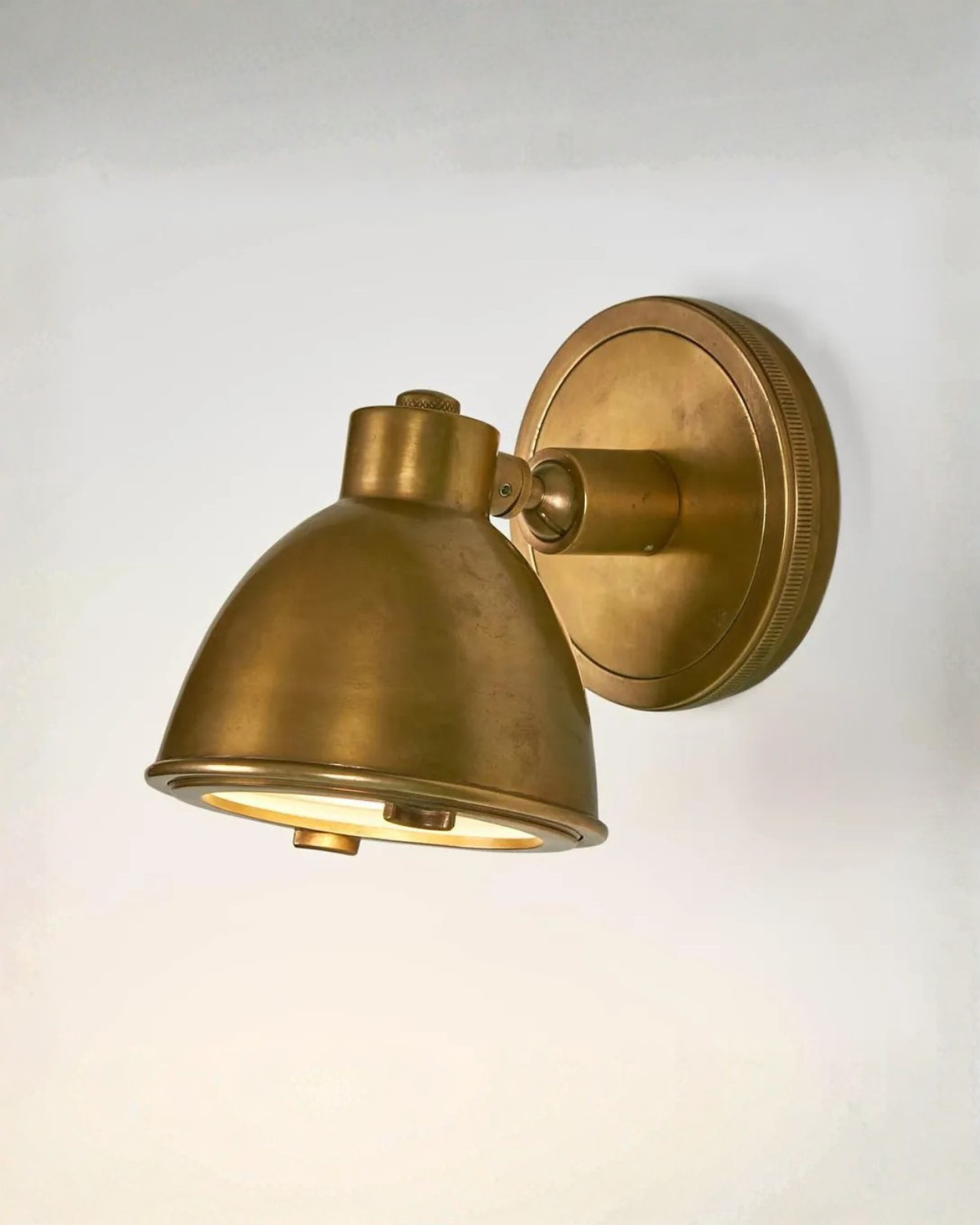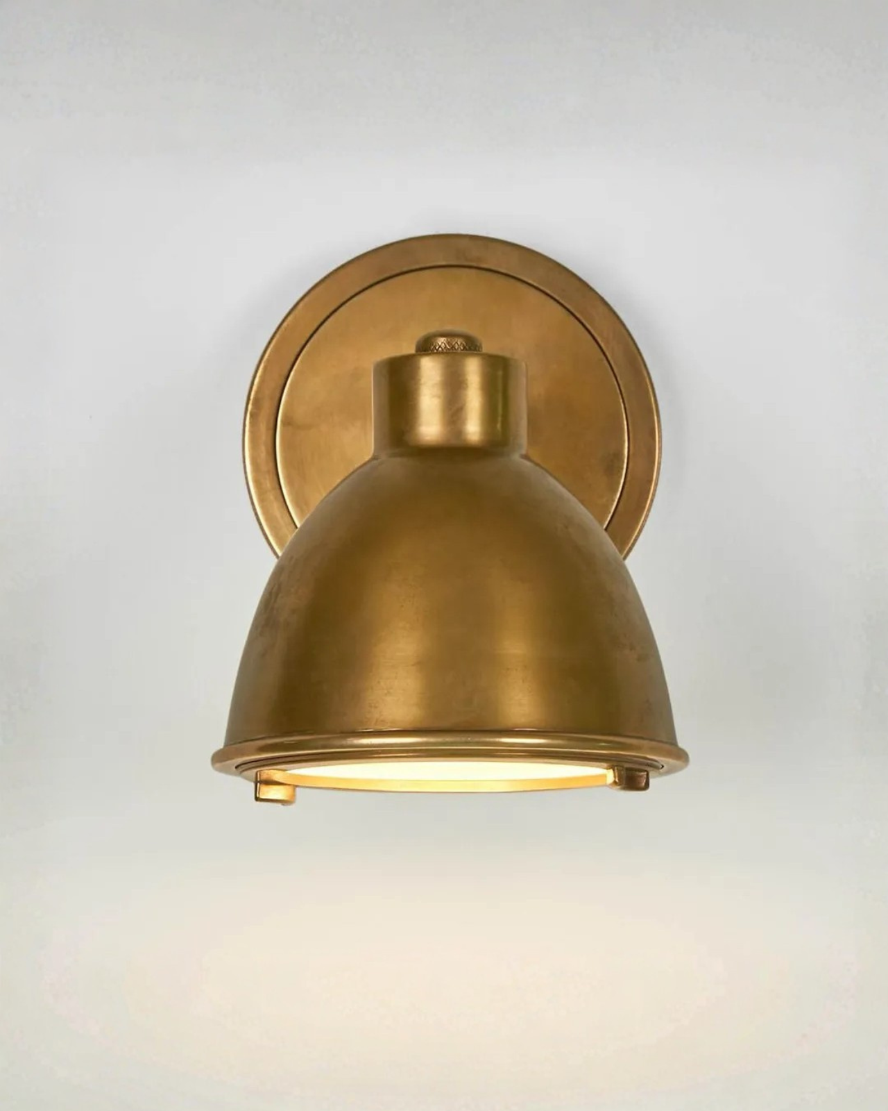 Understated industrial style meets timeless design in this versatile wall light. With an IP54 rating, it’s protected against dust and water, making it suitable for indoor spaces like living rooms, bedrooms, and kitchens, as well as outdoor areas such as patios and poolside. Crafted from solid brass, the sconce features a glass diffuser that shields the bulb while casting a soft, downward glow delivering practical illumination with subtle industrial character.