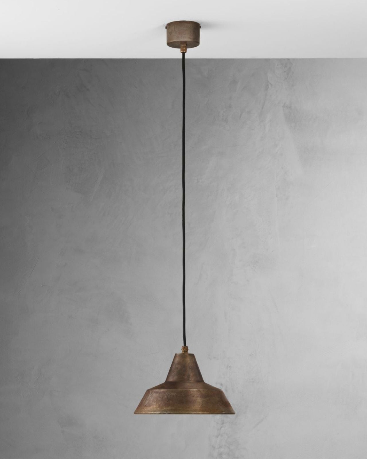 Enhance your space with this rustic Italian made disc pendant. Exuding Italian artisan craftsmanship, style and quality, this pendant and its fitting is specially treated with accelerated oxidation that produces an aged finish commonly referred to as an "antique" style.