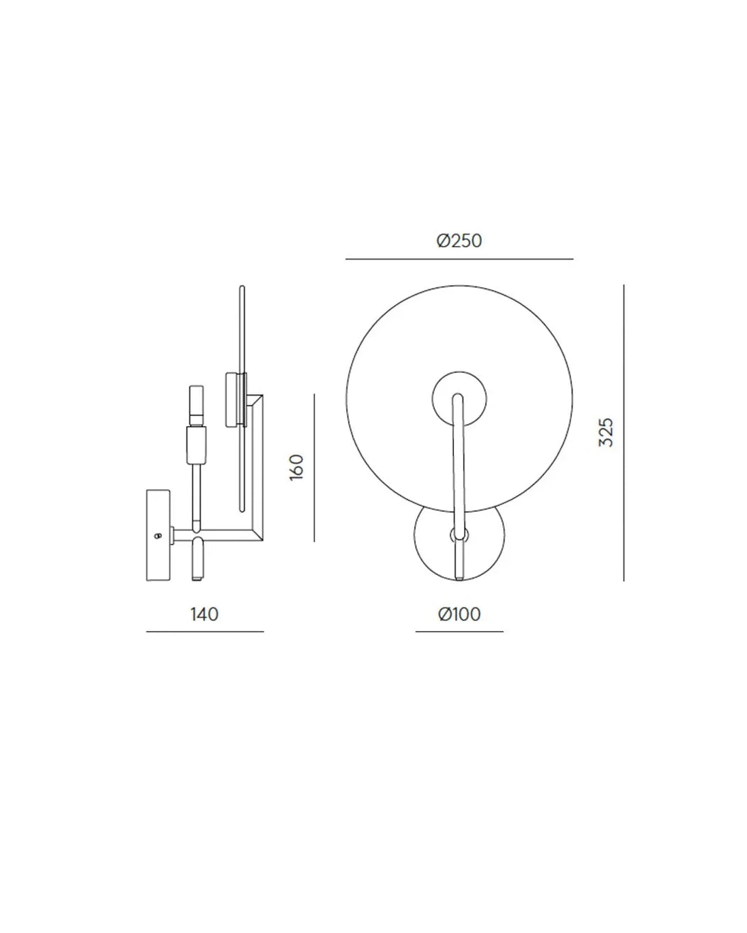 Technical drawing of a wall-mounted light fixture with dimensions.