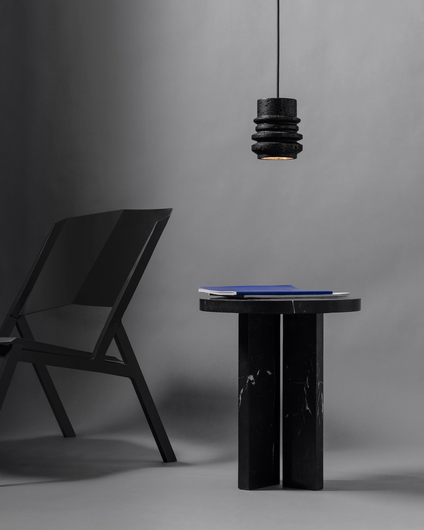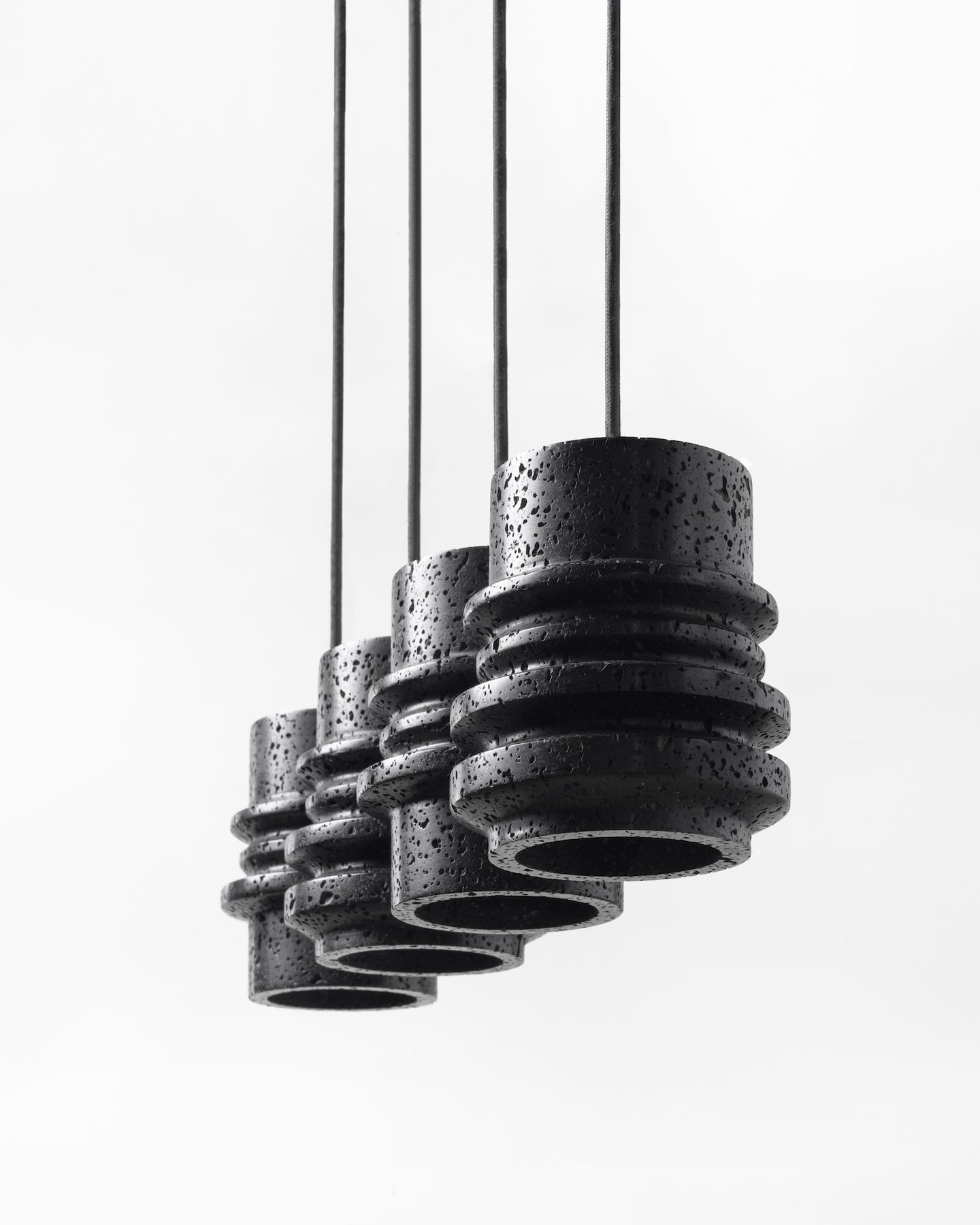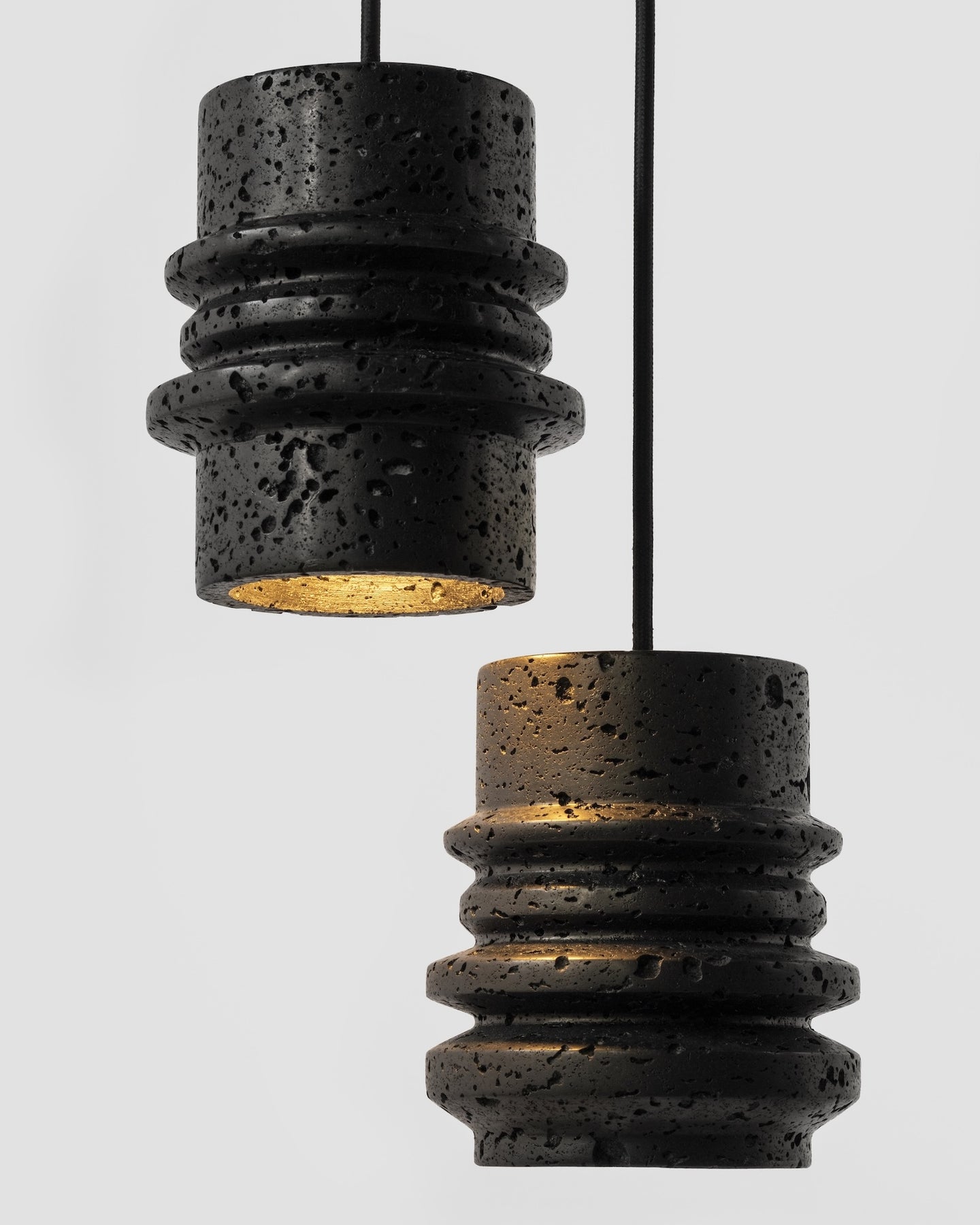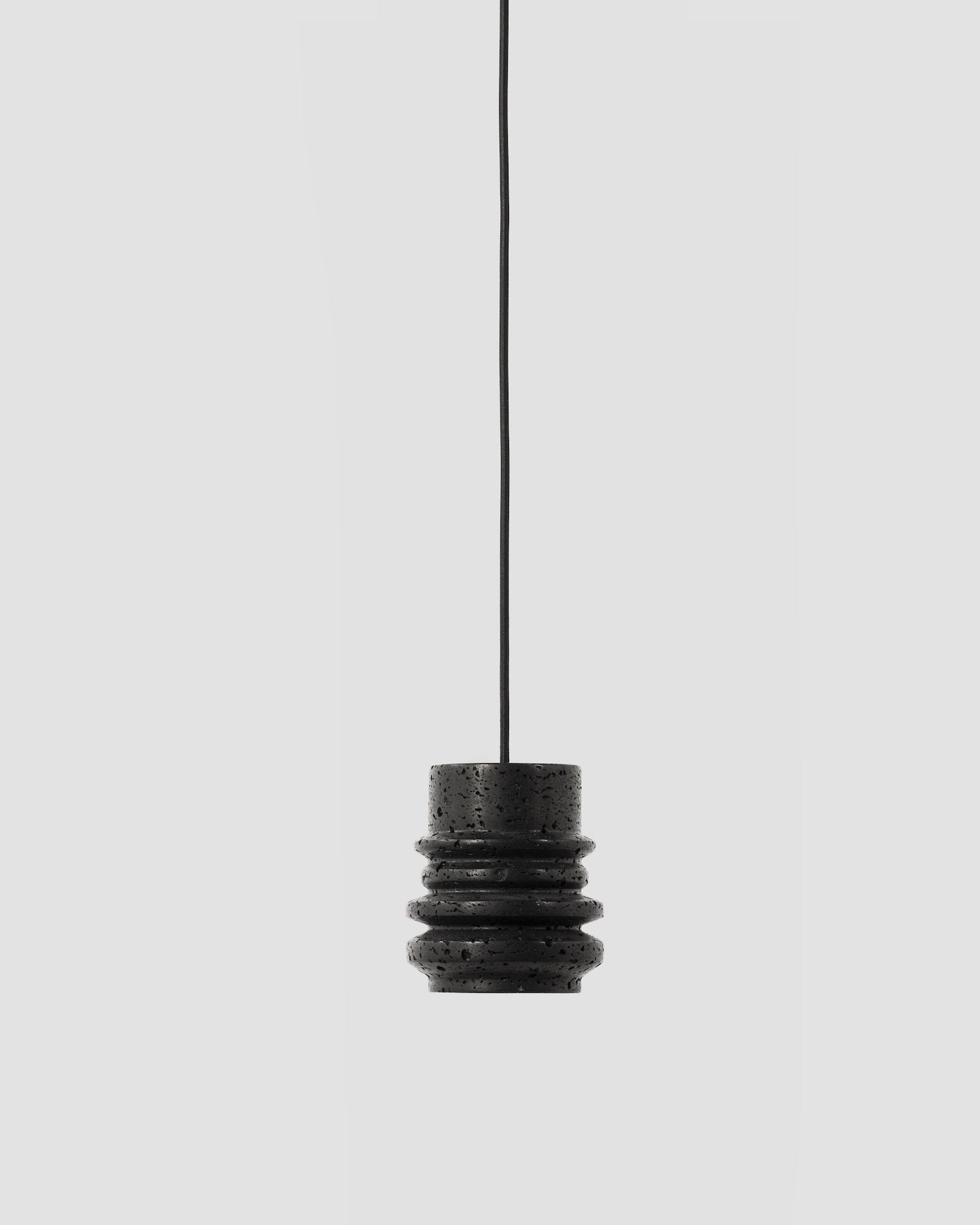 Each pendant is crafted from lava stone and finished with black anodised aluminium fixings. Natural surface variation is part of the stone’s appeal, ensuring no two are exactly alike.