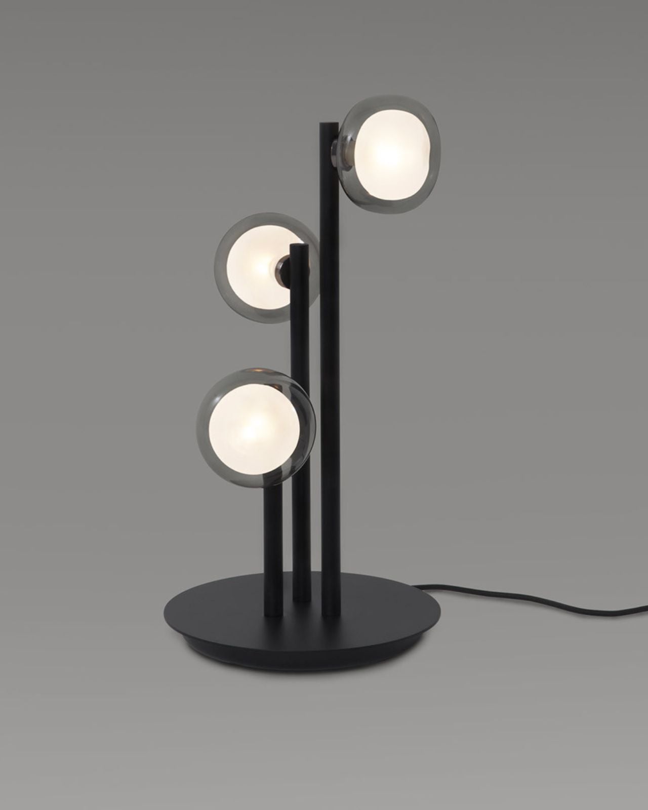 The Layered Glass Triple Table Lamp features a 50s-inspired silhouette offering both functional lighting and moody atmospheric glow. The fitting blends mid-century elegance featuring a frosted diffuser encased in a Clear or Smoke glass shade with a Black Chrome or Brushed Brass detailing. The contemporary refinement is ideal for living rooms, bedrooms, or stylish workspaces.