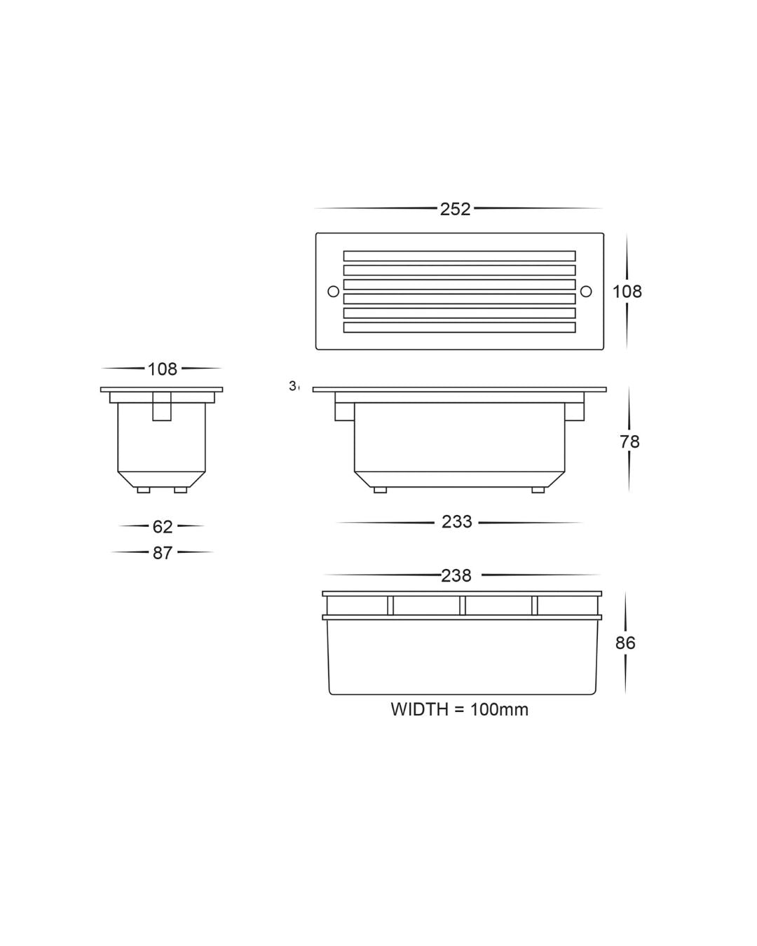 Recessed vented wall light technical drawing