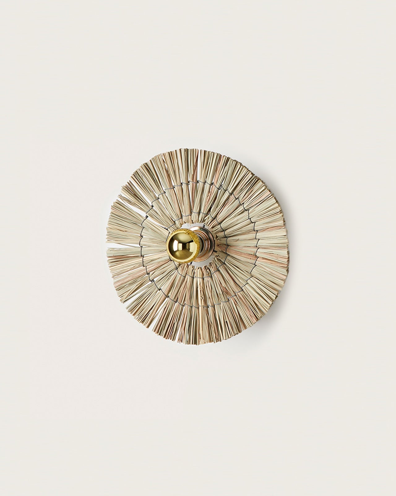 This decorative Spanish design is made from a dried grass circular frame and gold metal structure. Bringing effortless luxury to any interior this design is suited for illuminating living areas, bedrooms and hallways. Available in a small or large this wall light is sold individually but is beautiful when grouped in a composition of three. This design is recommended to be paired with a gold or silver capped E27 to add an extra touch of luxury.