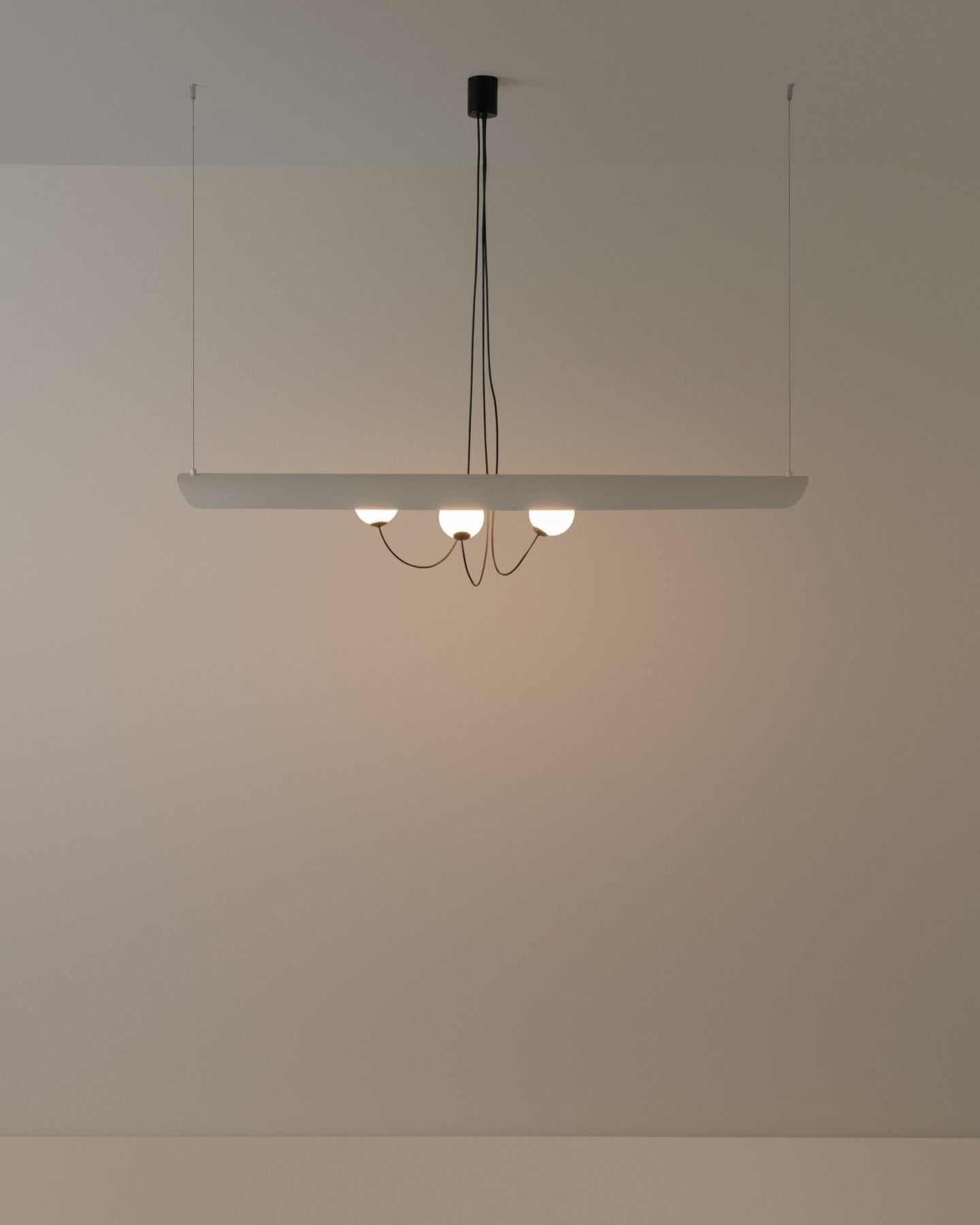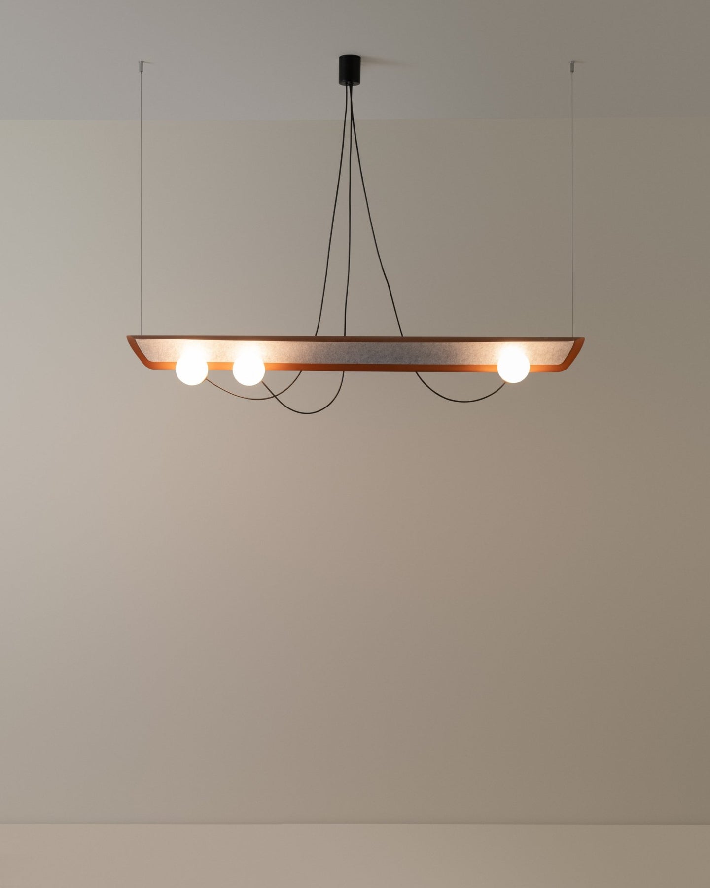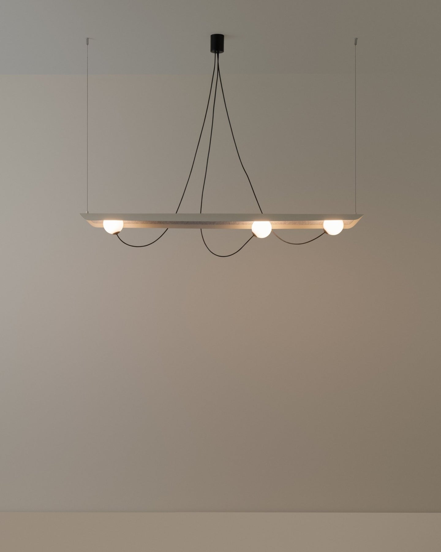 The Magnetic Balance Acoustic Linear Pendant seamlessly integrates advanced acoustic technology with minimalist design, offering both functional lighting and sound absorption in one elegant fixture. Designed to enhance modern interiors, this pendant light features a magnetic glass globe that can be repositioned along a felt-covered panel, allowing for customizable lighting effects and aesthetic flexibility. Its sleek profile and soft grey felt interior contribute to a harmonious blend of form and function, making it an ideal choice for spaces requiring both illumination and noise reduction.