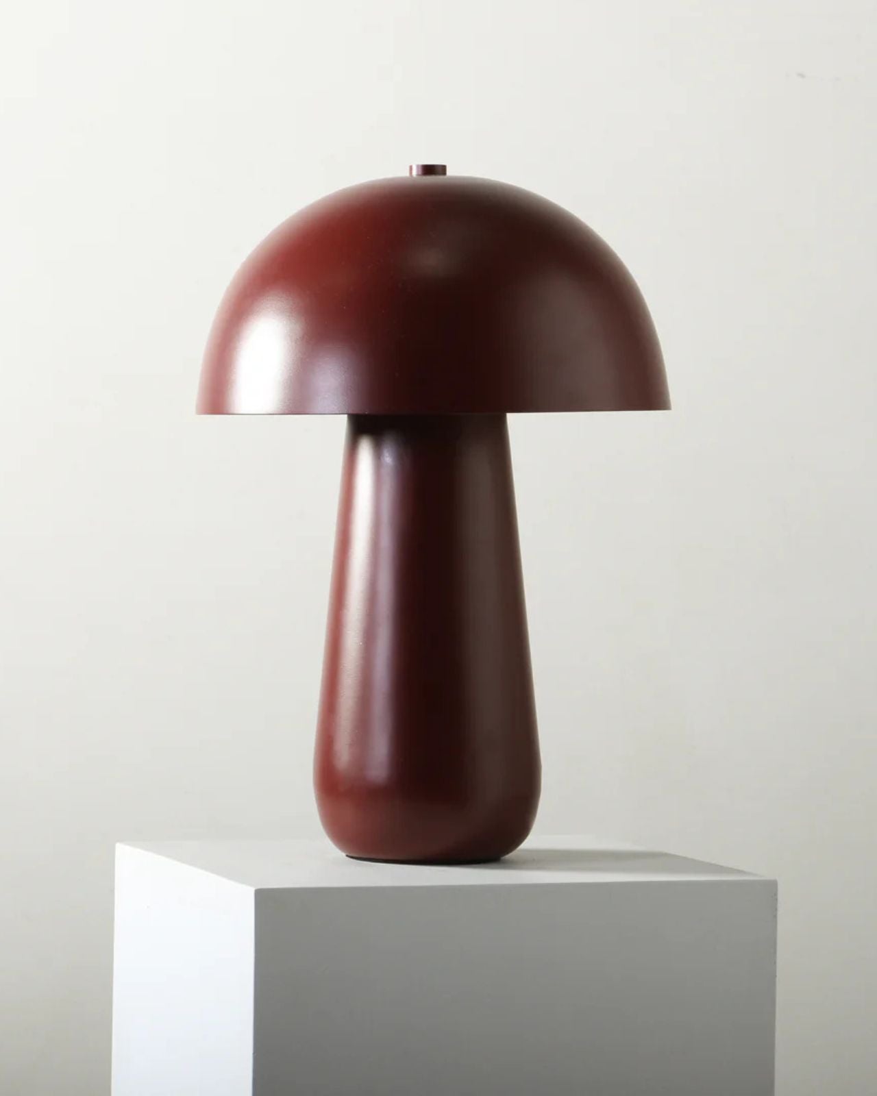 The Metal Mushroom Table Lamp combines soft, sculptural form with practical functionality, available in Burgundy or Tan finishes. Its smooth, mushroom-inspired shade and rounded base bring a subtle warmth that complements both modern and classic interiors. With a balanced silhouette, and muted tones, this fitting is ideal for bedside tables, consoles, or reading corners.