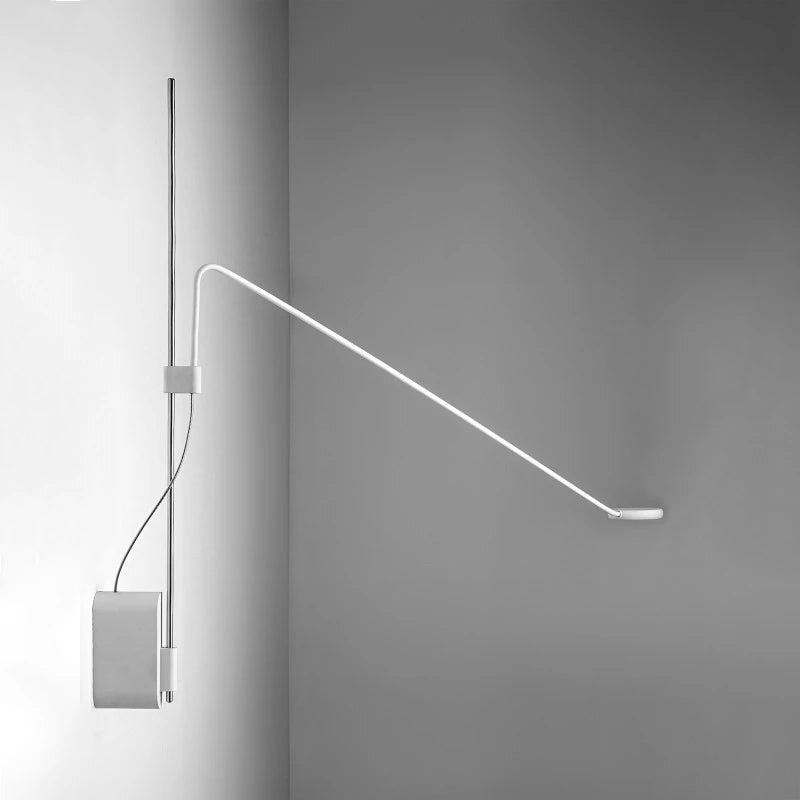 This minimalist single wall light features a lineal and simplistic arm design and casts a gorgeous directed light. With adjustable height and rotating arm you are given the flexibility to use this striking lamp to highlight items or focus light onto specific areas. Available in Black and White and three varying arm lengths.