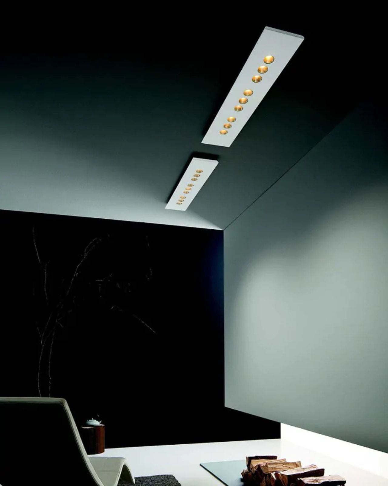A stunning minimalist design featuring a streamline rectangular aluminium casing with either three, six or nine reflectors. An ideal choice for apartment living with the streamline design making it suitable where there is concrete within the ceiling. The beautiful feature to this light are the various reflectors colours available being Aluminium, Pearl White, Anthracite, Gold Leaf or Copper Leaf which sit within either a Black or White case allowing them to bring a distinctive contrast to your Living Room or Bedroom lighting.