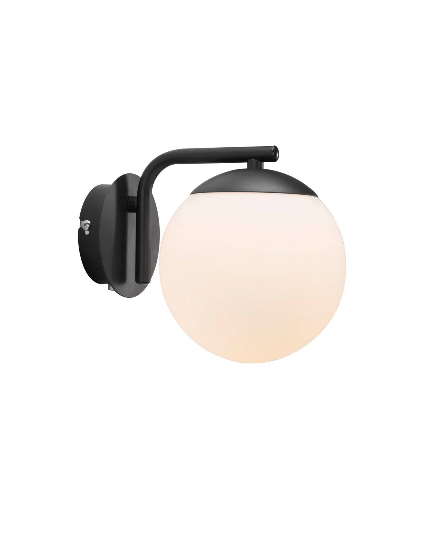 A modern Danish designed wall light featuring an opal glass sphere and gorgeous brass or black arm and mount. Add great style that complements both classic and modern settings.