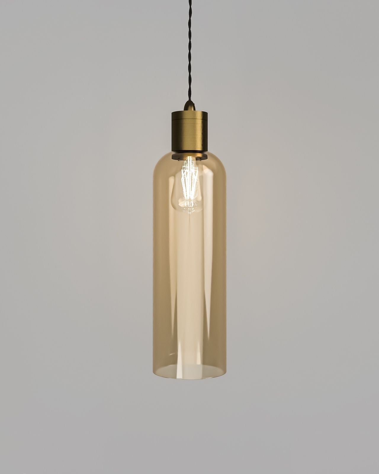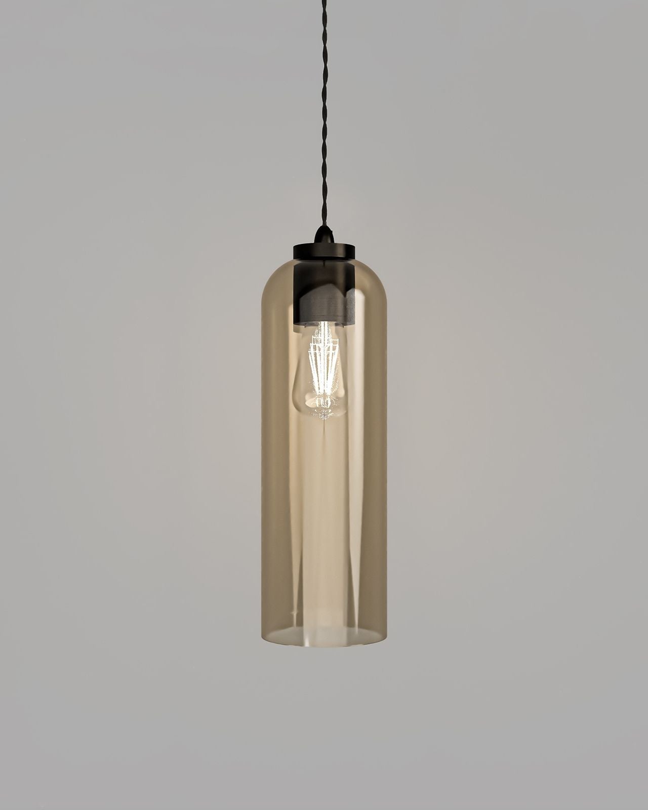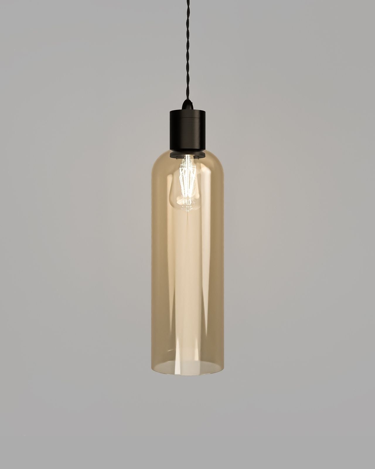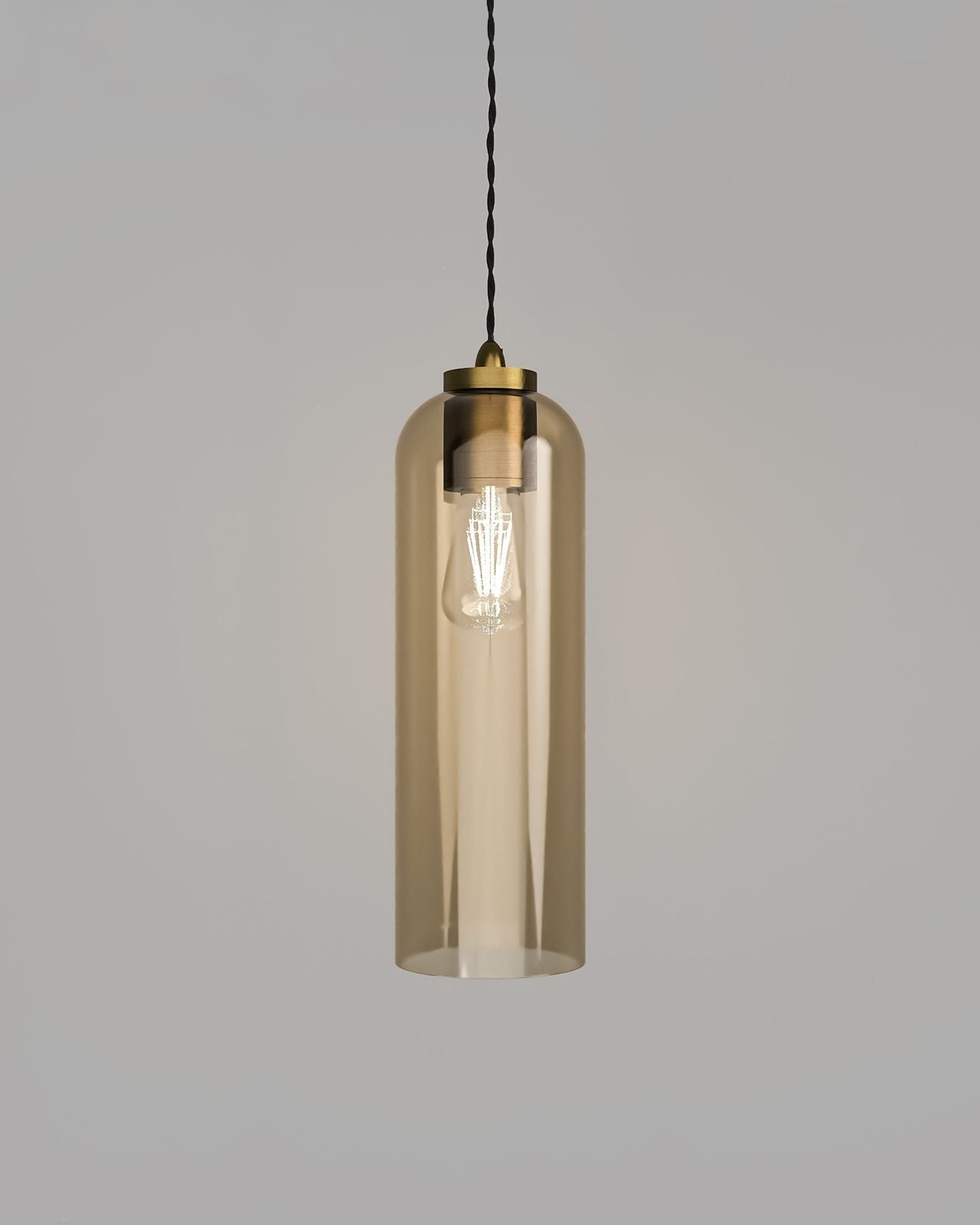 Modern Tubular Glass Pendant Light | Assorted Finishes - Amber / Iron