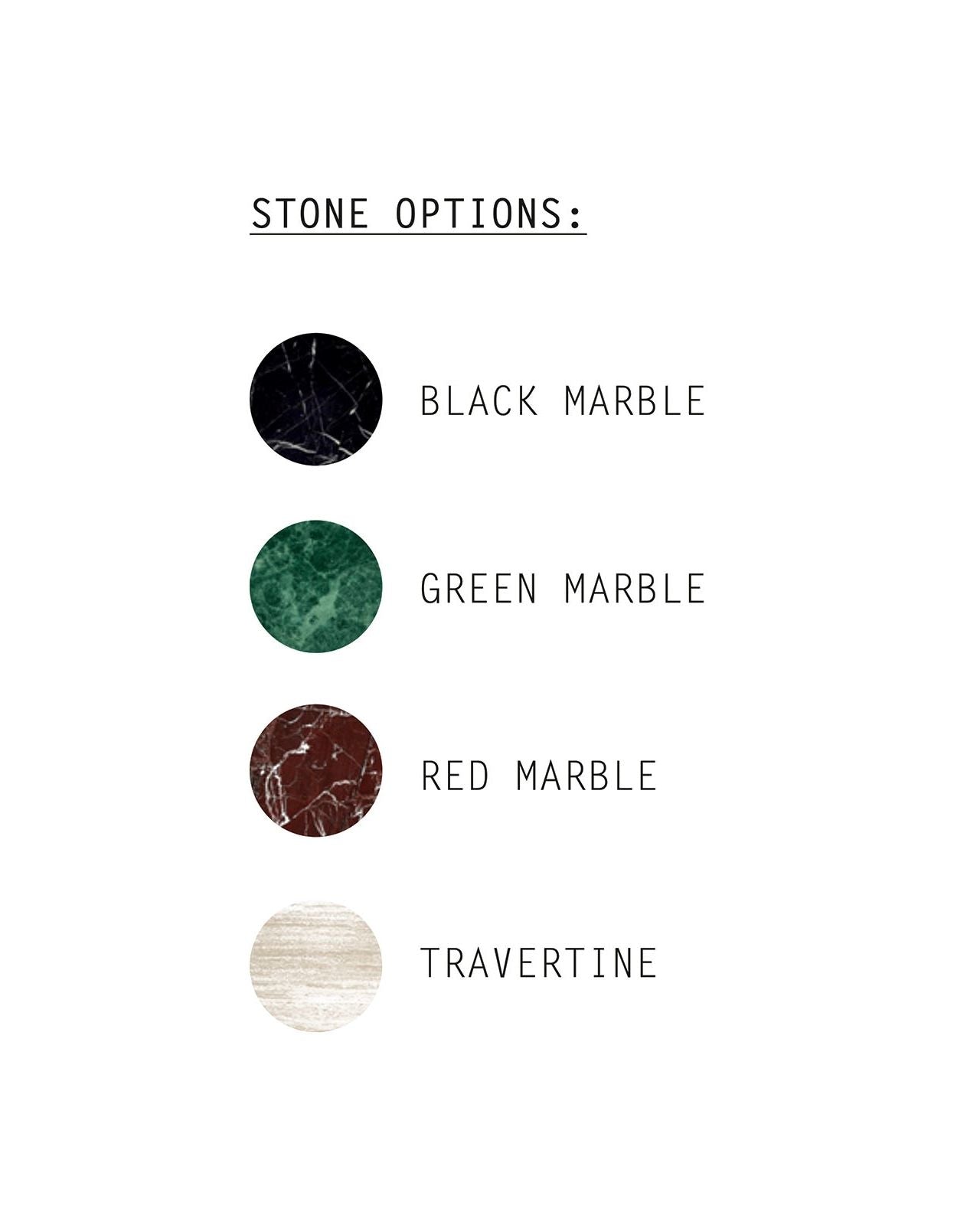 | Finishes | Black Marble, Green Marble, Red Marble or Travertine |