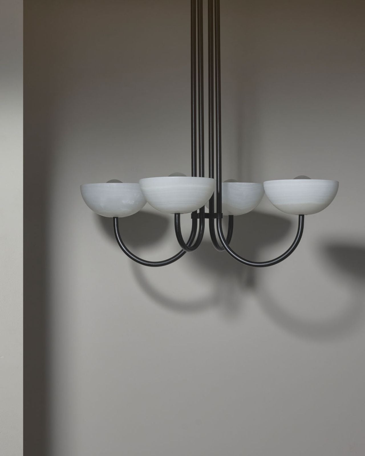Onyx Stone Narrow Quad Dome Chandelier | Aurelia | White Onyx | Brushed Black