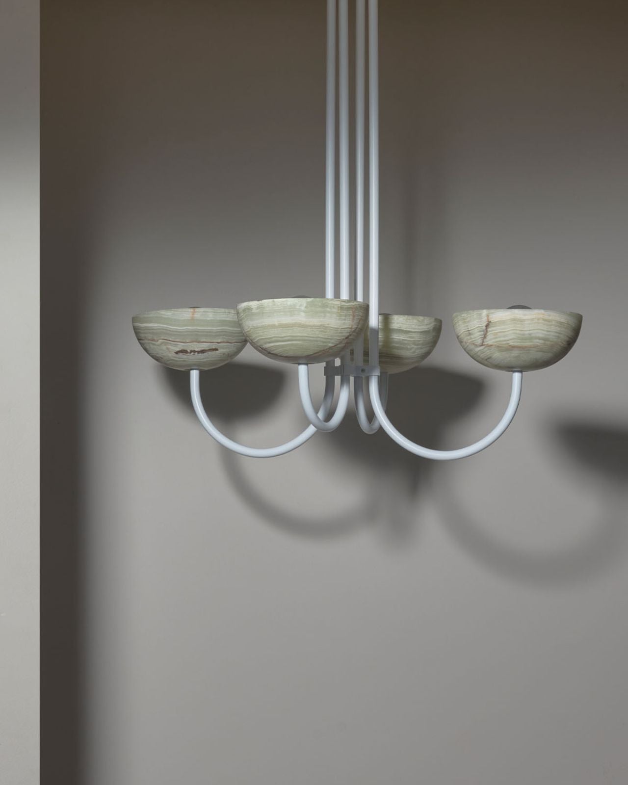 Onyx Stone Narrow Quad Dome Chandelier | Aurelia | Jade Onyx | White Satin