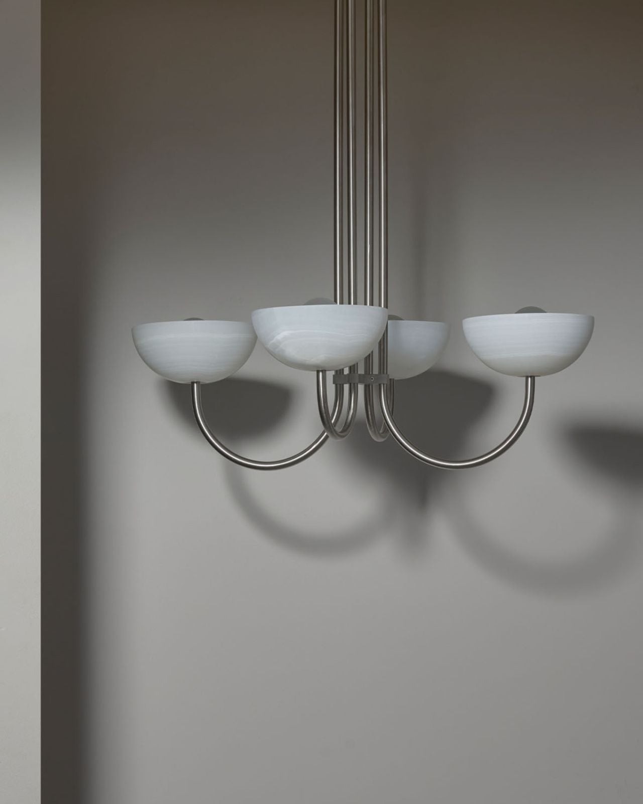 Onyx Stone Narrow Quad Dome Chandelier | Aurelia | White Onyx | Brushed Nickel