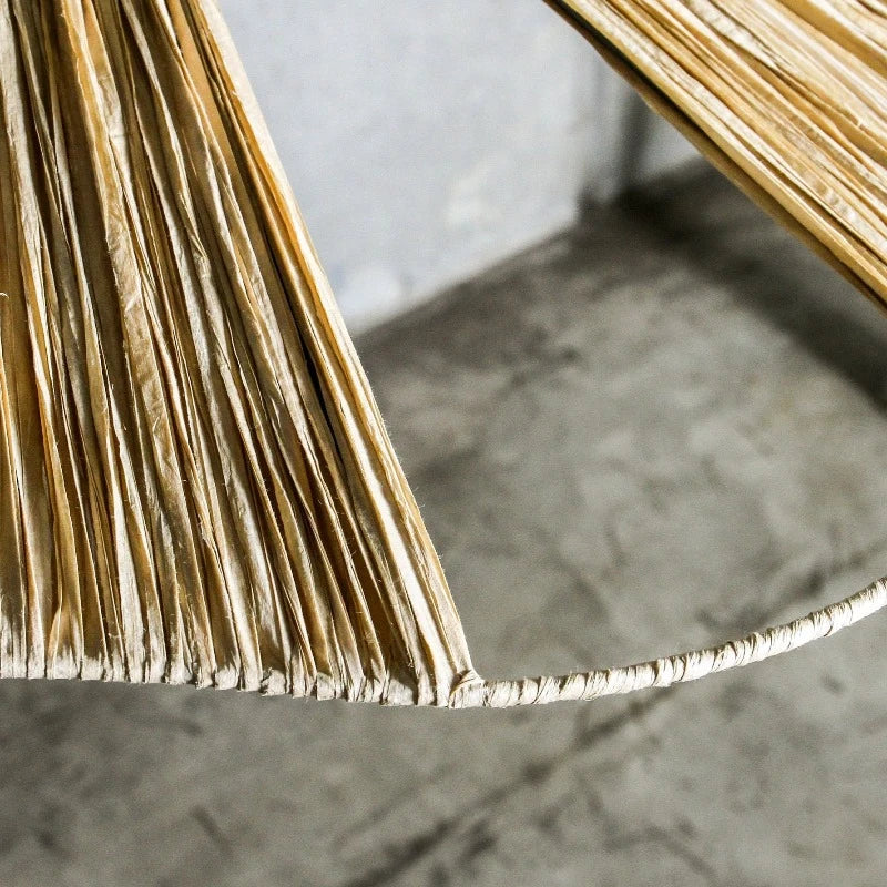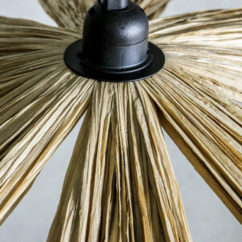 This modern design has been crafted from natural raffia and metal, showcasing an exotic flat form. Made for interior use this pendant is well suited for over dining tables, kitchen islands, and in master bedrooms. A design that will bring a coastal touch to any interior. Suspended by an 1100mm PVC black suspension this organic fitting has been designed with the perfect simplicity to suit singular or grouped installation.