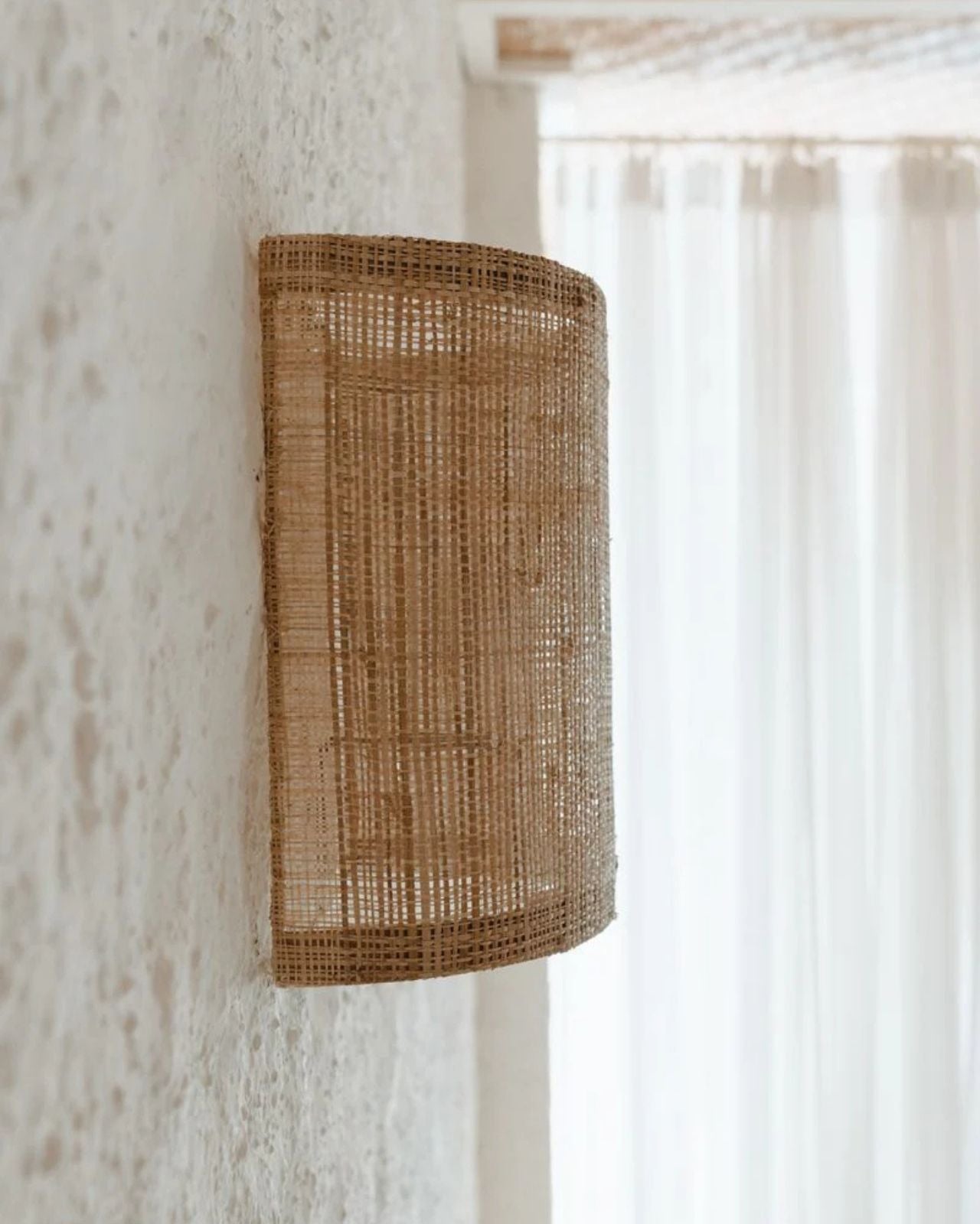This wall sconce features a half-round shape that has been carefully handmade from natural rattan. The Organic Rattan Half-Round Wall Light is perfect to complement a modern, coastal or boho space. This modern and organic light provides indirect illumination bringing warmth and cosiness into living rooms, bedrooms, kitchens or hallways.