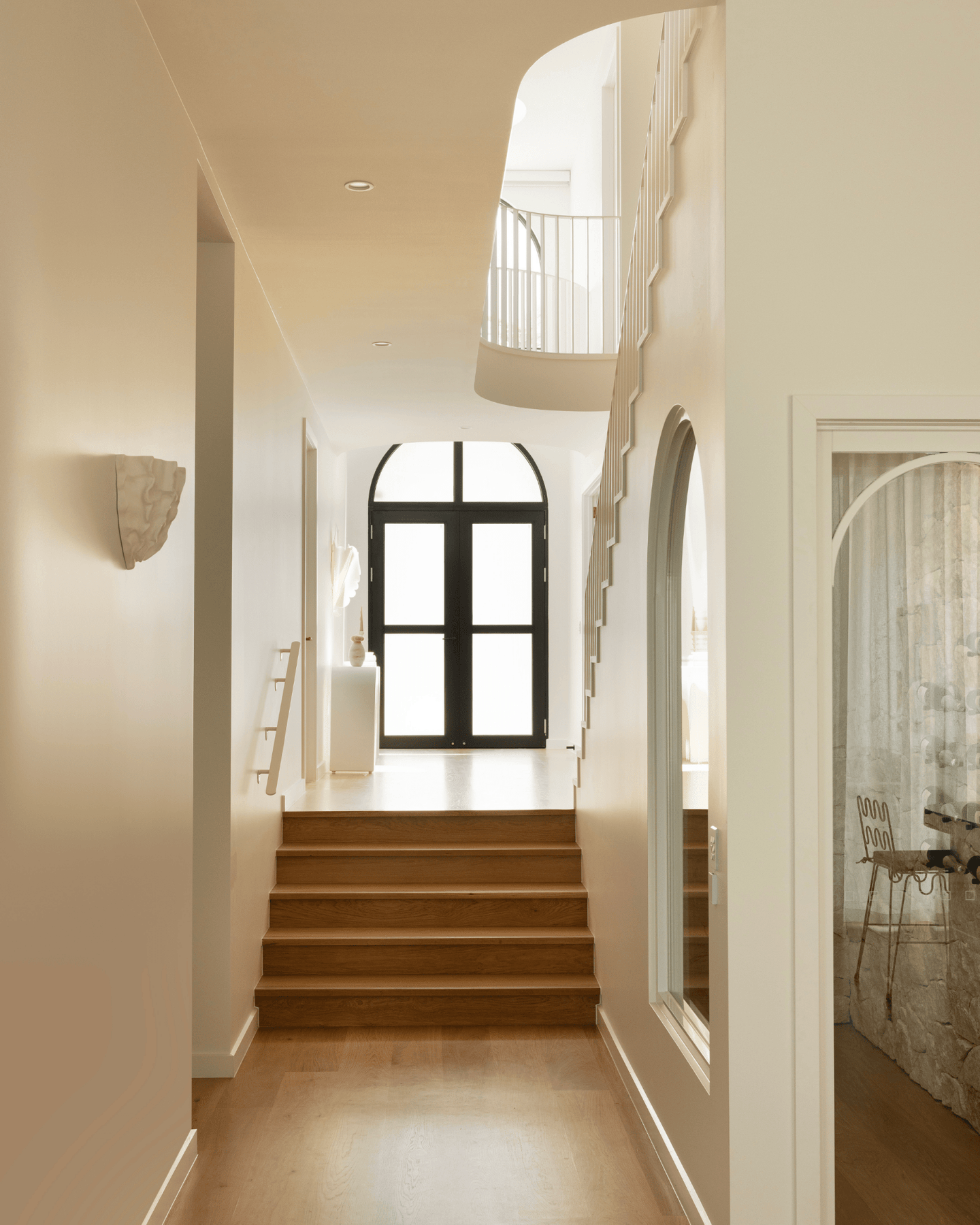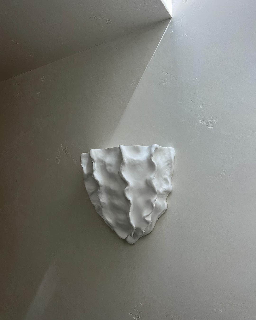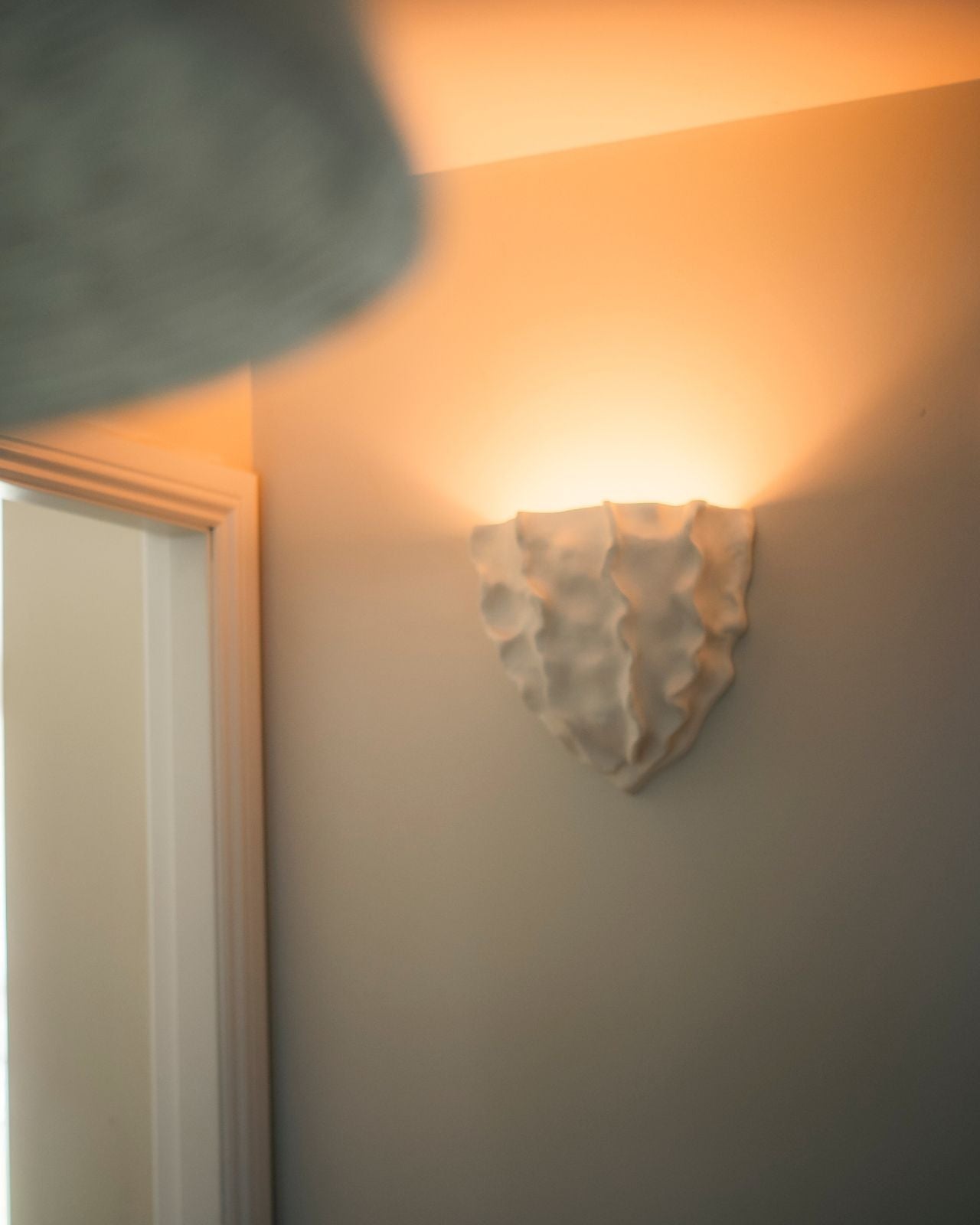 Organic Sculpted Wall Sconce Styled in a Minimalist Hallway