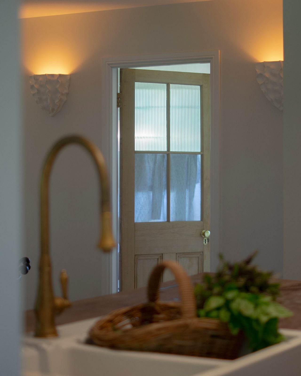 Organic Sculpted Wall Sconce Styled in a Minimalist Kitchen